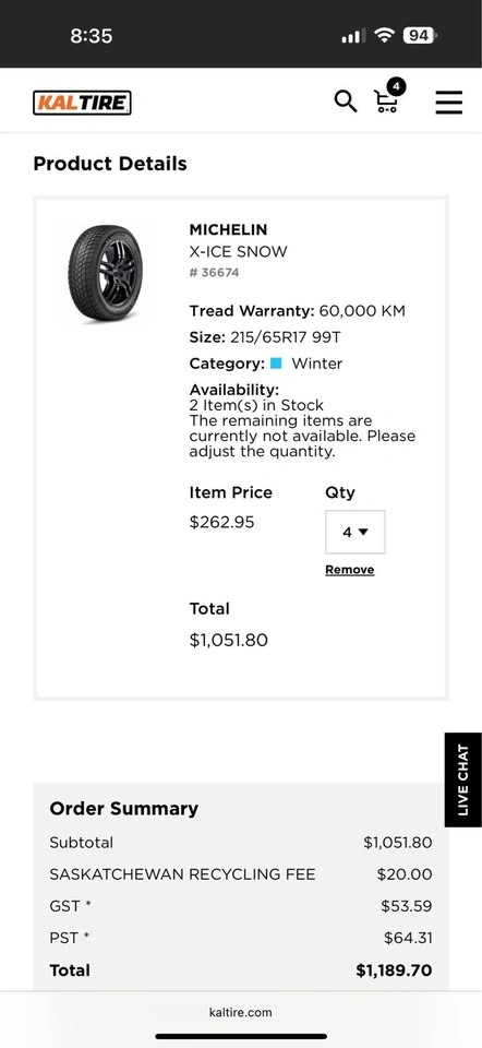 275/65R18 Michellin Primacy XC All Season M+S Tires