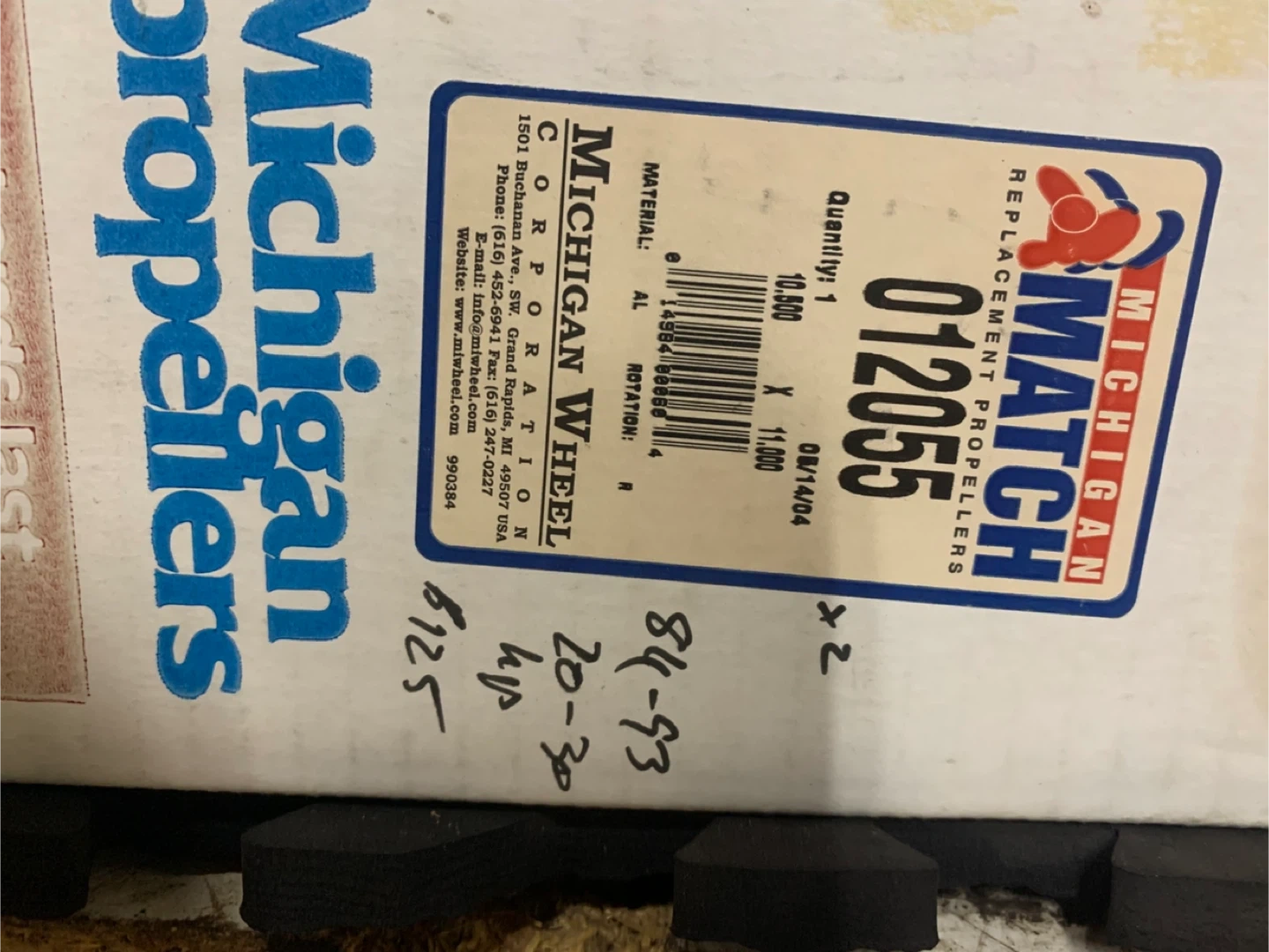 Selling a Michigan Wheel propeller, model number 012055. It's a replacement propeller from Michigan Wheel Corporation. The material is aluminum, and the rotation is R. It's a high-strength prop designed for longer life See photos for size and application