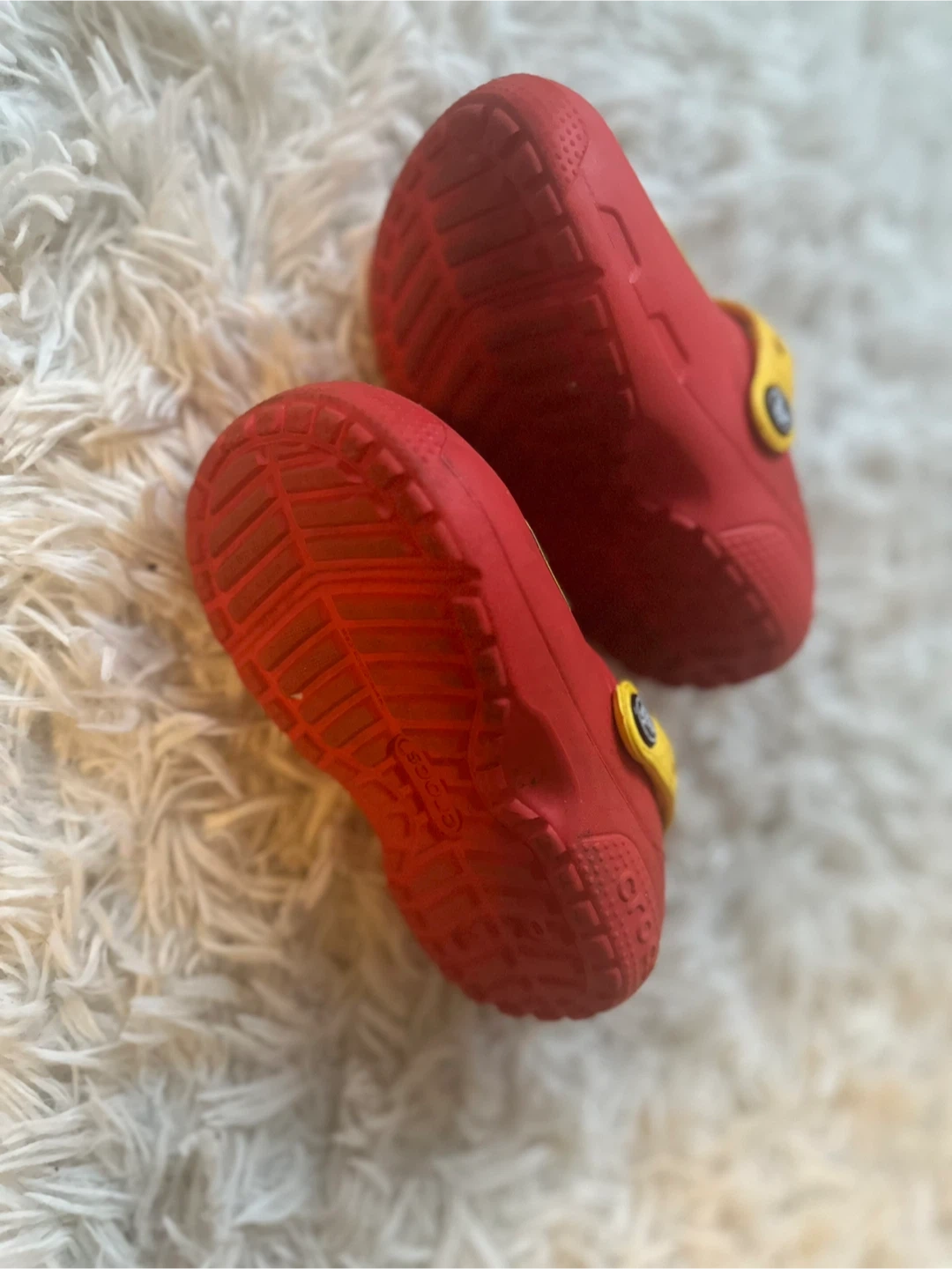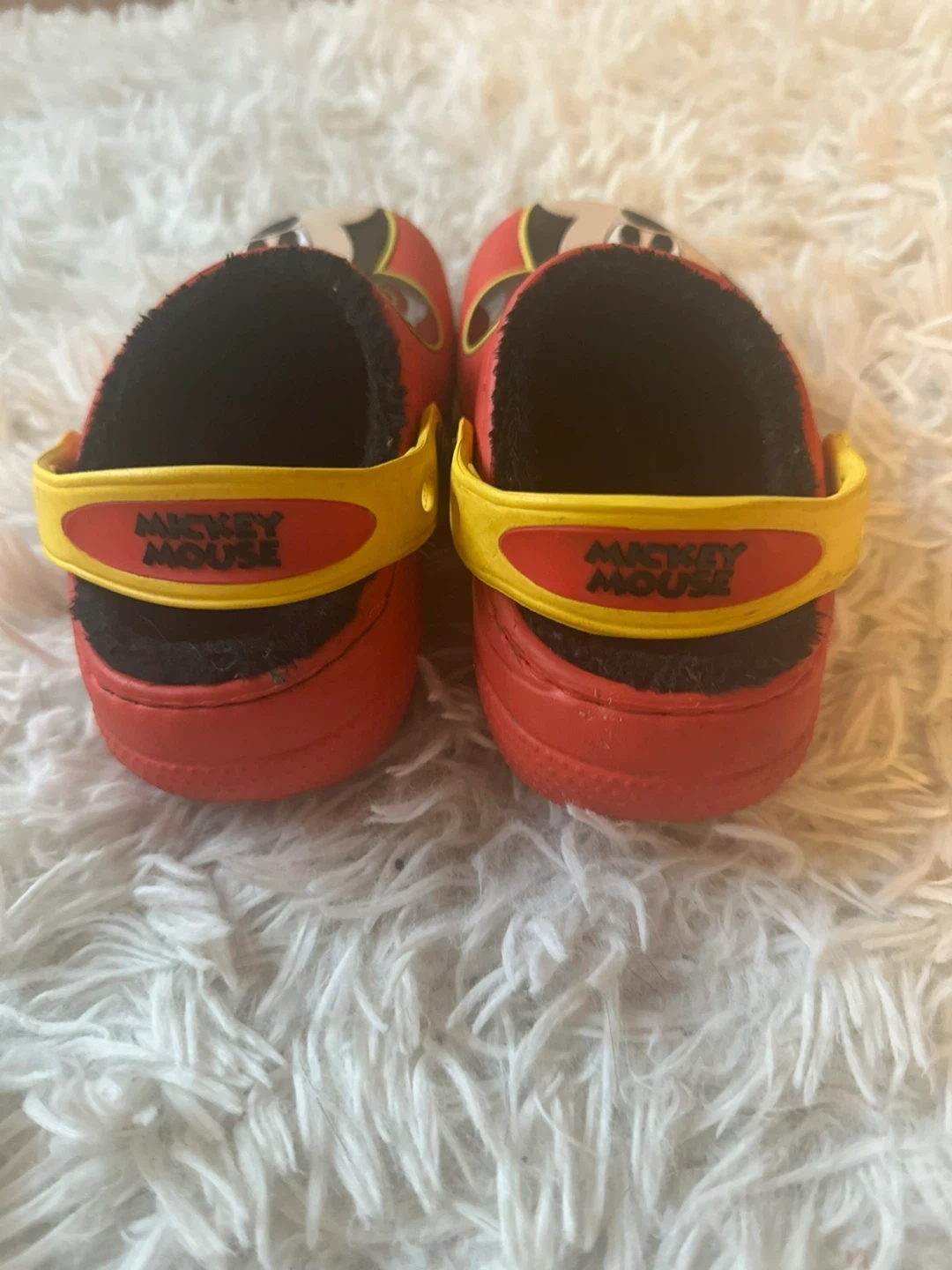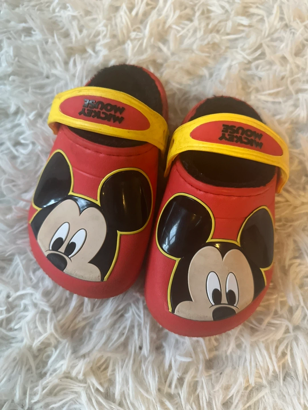 Selling a pair of adorable Mickey Mouse Crocs! They're red with a yellow strap and feature Mickey's face on the front. Great for little ones who love Disney! Size 8.5c