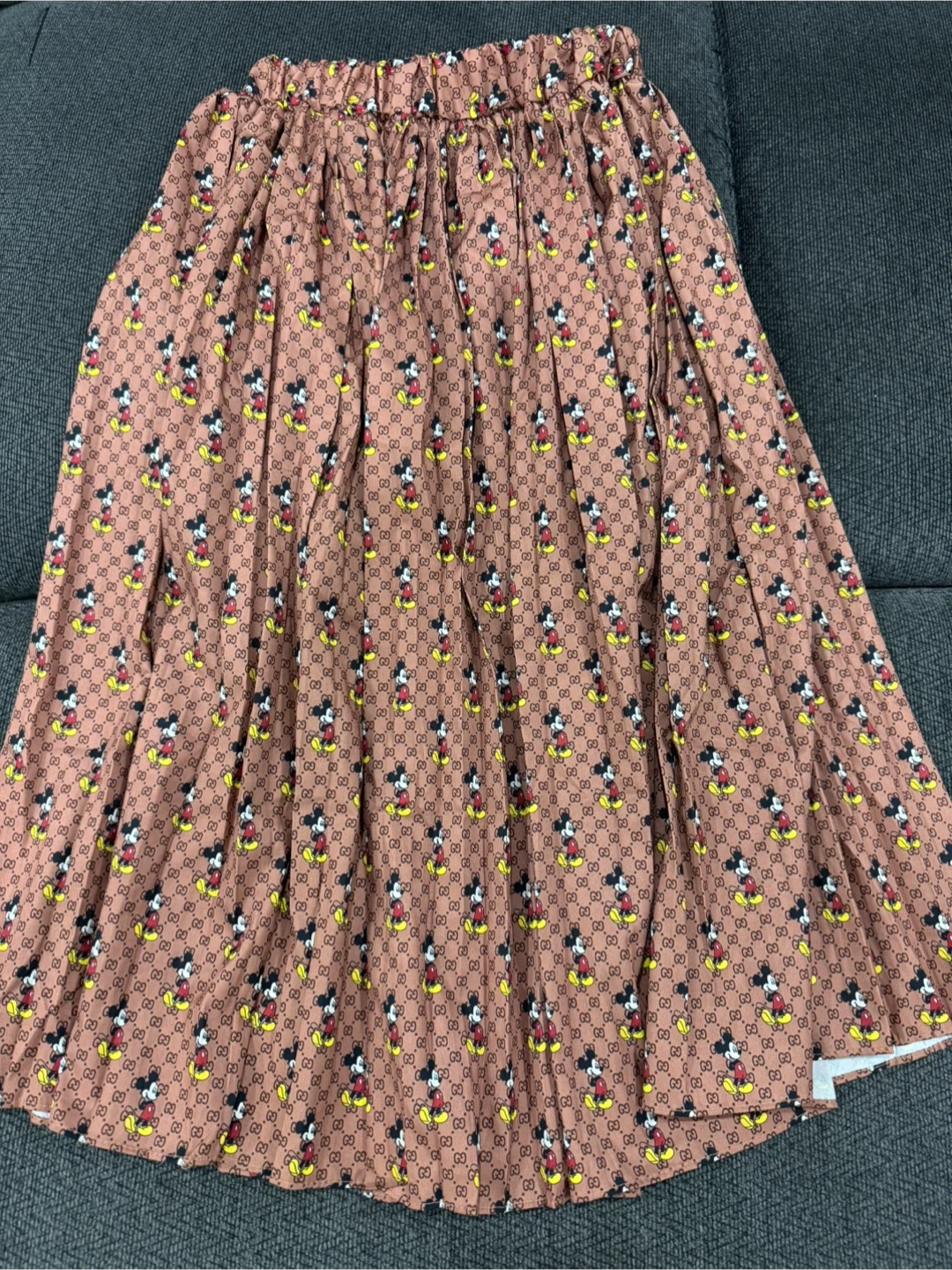 Selling a cute skirt featuring Mickey Mouse! The skirt is a pleated style with an all-over Mickey Mouse print. Perfect for any Disney fan!