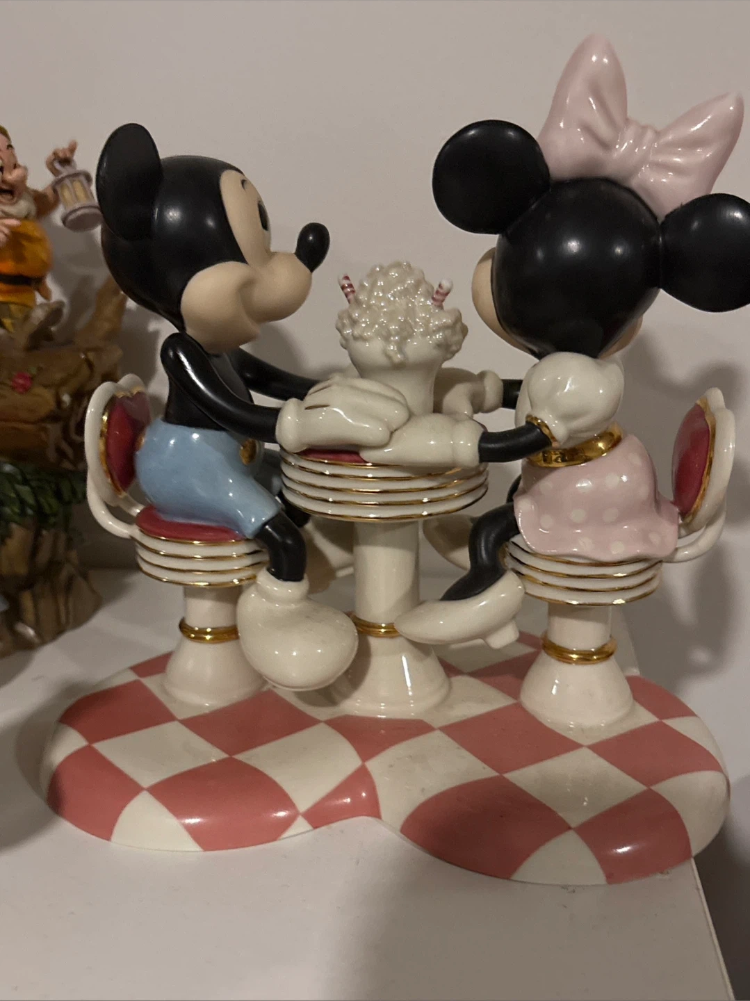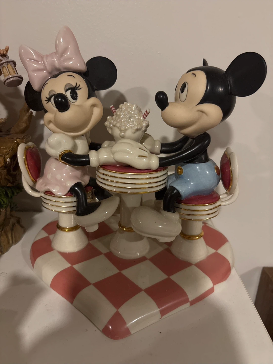 Selling a charming Mickey's Soda Shop Sweetheart figurine by Lenox. This piece features Mickey and Minnie Mouse enjoying a soda at a retro-style soda shop table. It's a delightful addition to any Disney collection!