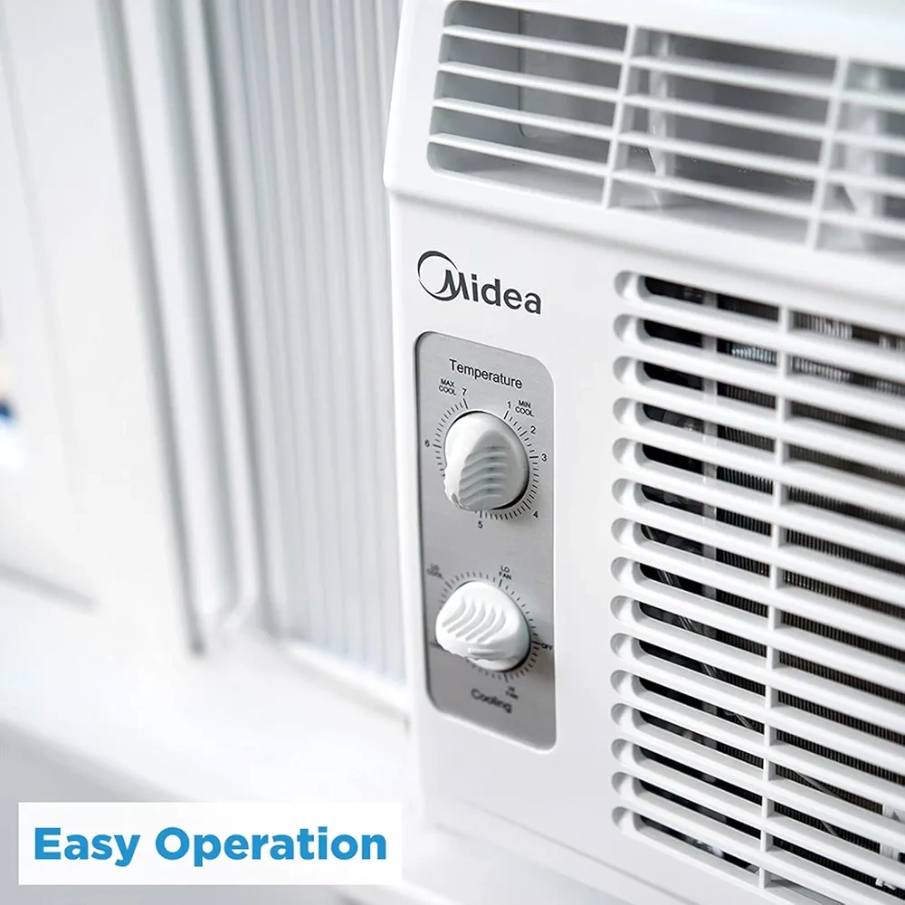 Selling a Midea window air conditioner. It's perfect for cooling small rooms and offers quiet and powerful operation. It's designed for easy operation and provides 2-in-1 comfort by cooling and circulating air