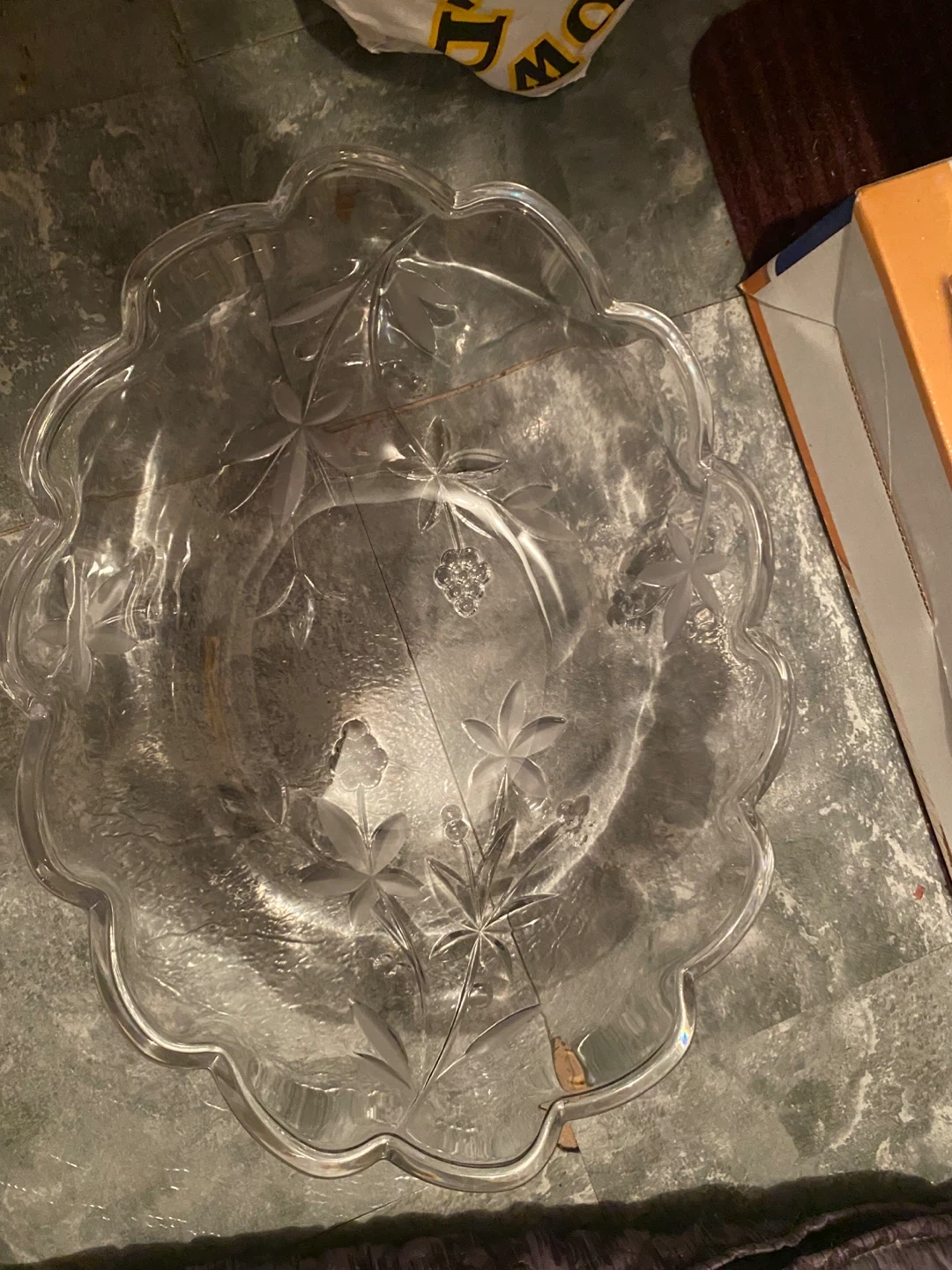 Selling a beautiful Mikasa crystal bowl! It has a lovely floral design and comes with its original box. Perfect for serving fruit or as a decorative piece for your home