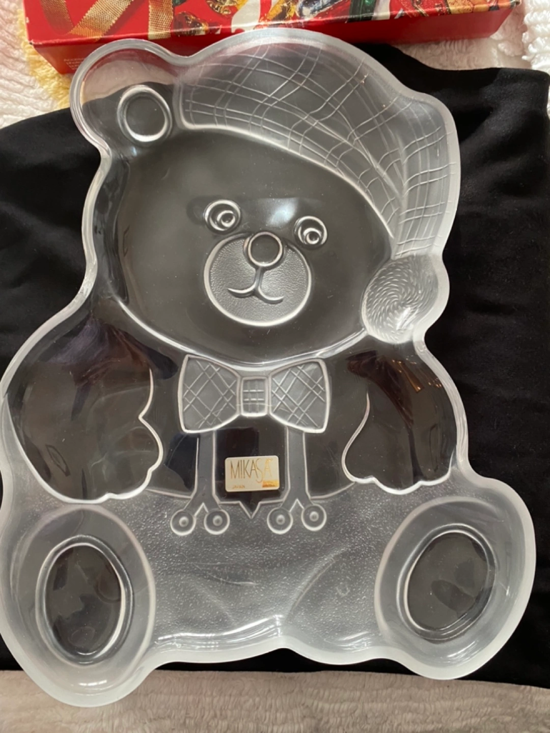 Clear glass teddy bear serving platter. Perfect for Christmas entertaining.