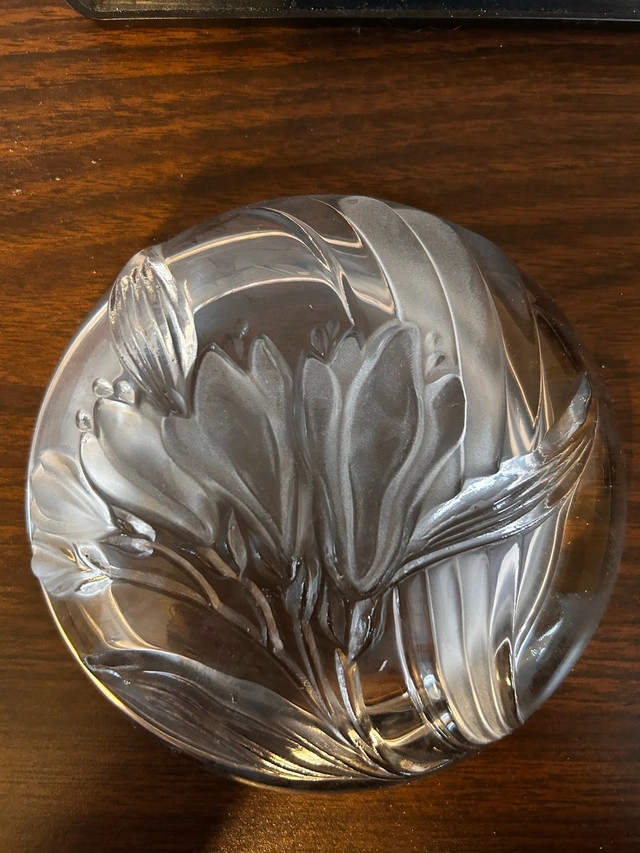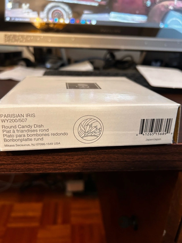 Adorn your space with this exquisite Mikasa Parisian Iris round candy dish. In excellent condition, this bonbonniere features a delicate iris design, perfect for adding a touch of elegance to any room. Additional details: * Brand: Mikasa * Pattern: Parisian Iris WY200/507 * Shape: Round * Material: Glass Looking to add a dash of sparkle to your everyday? This piece might just be the ticket! Quick disclaimer: if the ad is up, it's still up for grabs! Considering its condition and rarity, I'm asking $30. Cash only.