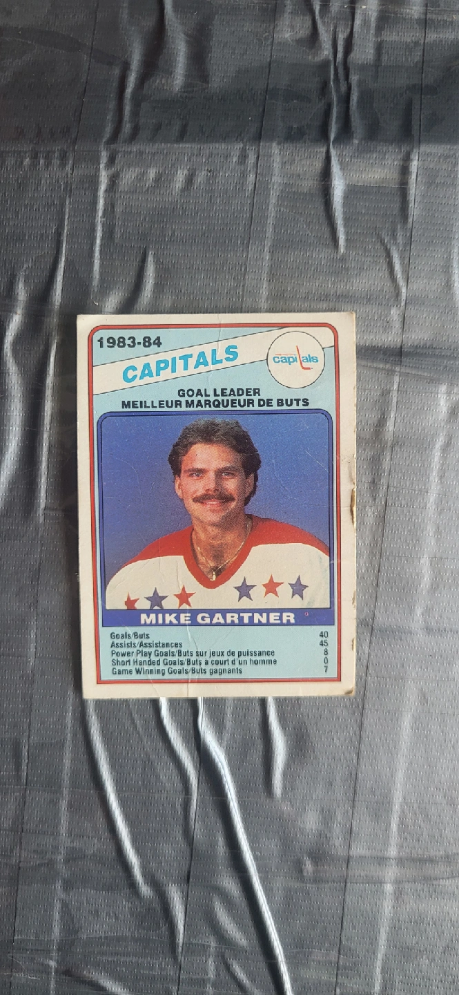 Selling a vintage Mike Gartner 1983-84 Washington Capitals hockey card. It's a great collectible piece for any hockey fan!