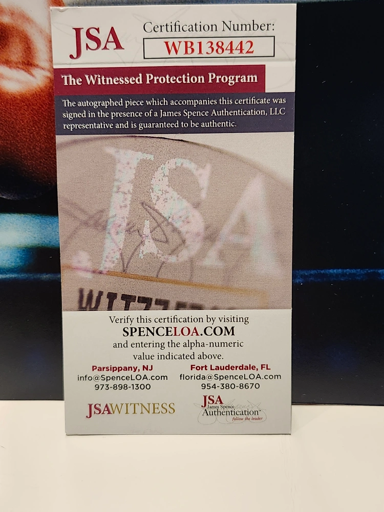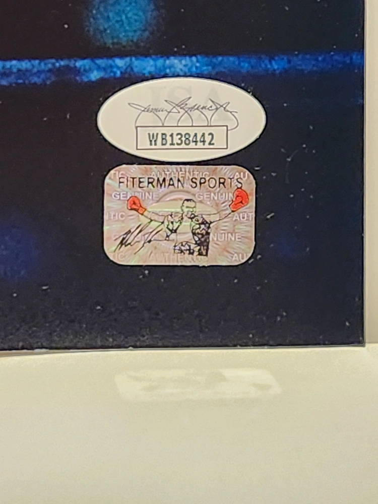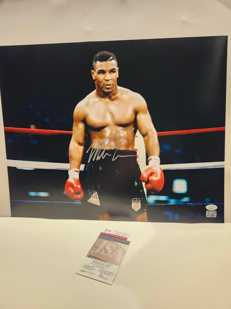 Selling an autographed 16 x 20 photo of Mike Tyson. This item has been authenticated by JSA, and the certification number is WB138442. A great piece for any boxing fan or collector!