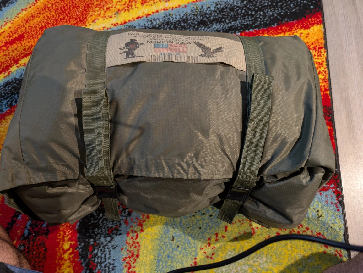 Authentic U.S. military-style cold weather sleeping bag, made in the USA by Alpina Industries, Knoxville, Tennessee. Designed for extreme cold conditions (rated to -22°C), this heavy-duty sleep system offers 100% waterproof protection and exceptional insulation. The bag features a durable olive green exterior, full-length zipper, and adjustable hood for warmth retention. Originally intended for military and field use, it’s perfect for camping, hunting, winter expeditions, or emergency kits. Features: 100% Waterproof outer shell Cold-rated to -22°C Durable polyester-wool blend with rayon-viscose lining Heavy-duty zipper with protective storm flap Adjustable hood for added warmth Made in the USA 🇺🇸 Comes with original manufacturer tags and instructions Ideal For: Outdoor enthusiasts, campers, preppers, collectors of military gear, or anyone needing reliable cold-weather protection. Pickup: Downtown (Oliver Area) 9733 111 st.