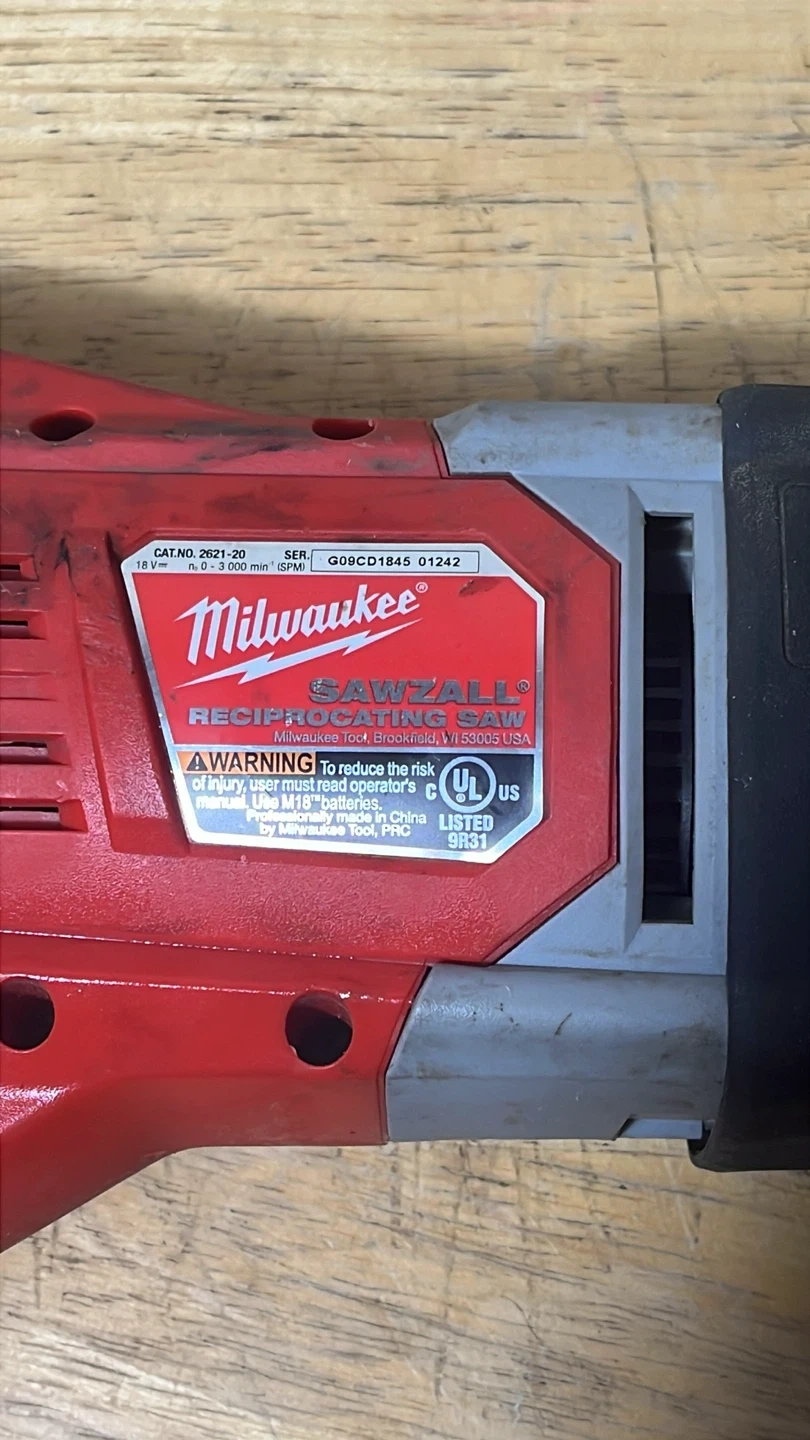 Selling a Milwaukee Sawzall reciprocating saw, model 2621-20. It's an 18V cordless tool in the classic Milwaukee red and black. Great for cutting various materials during renovation or construction projects