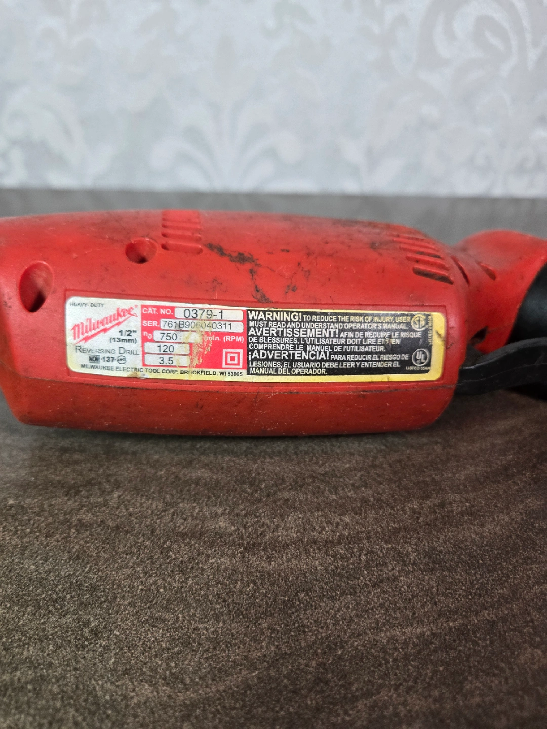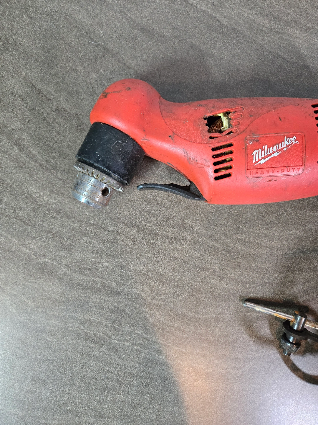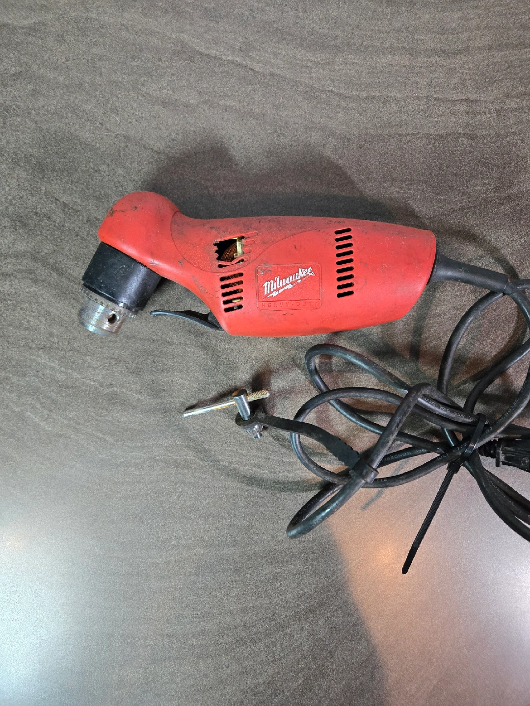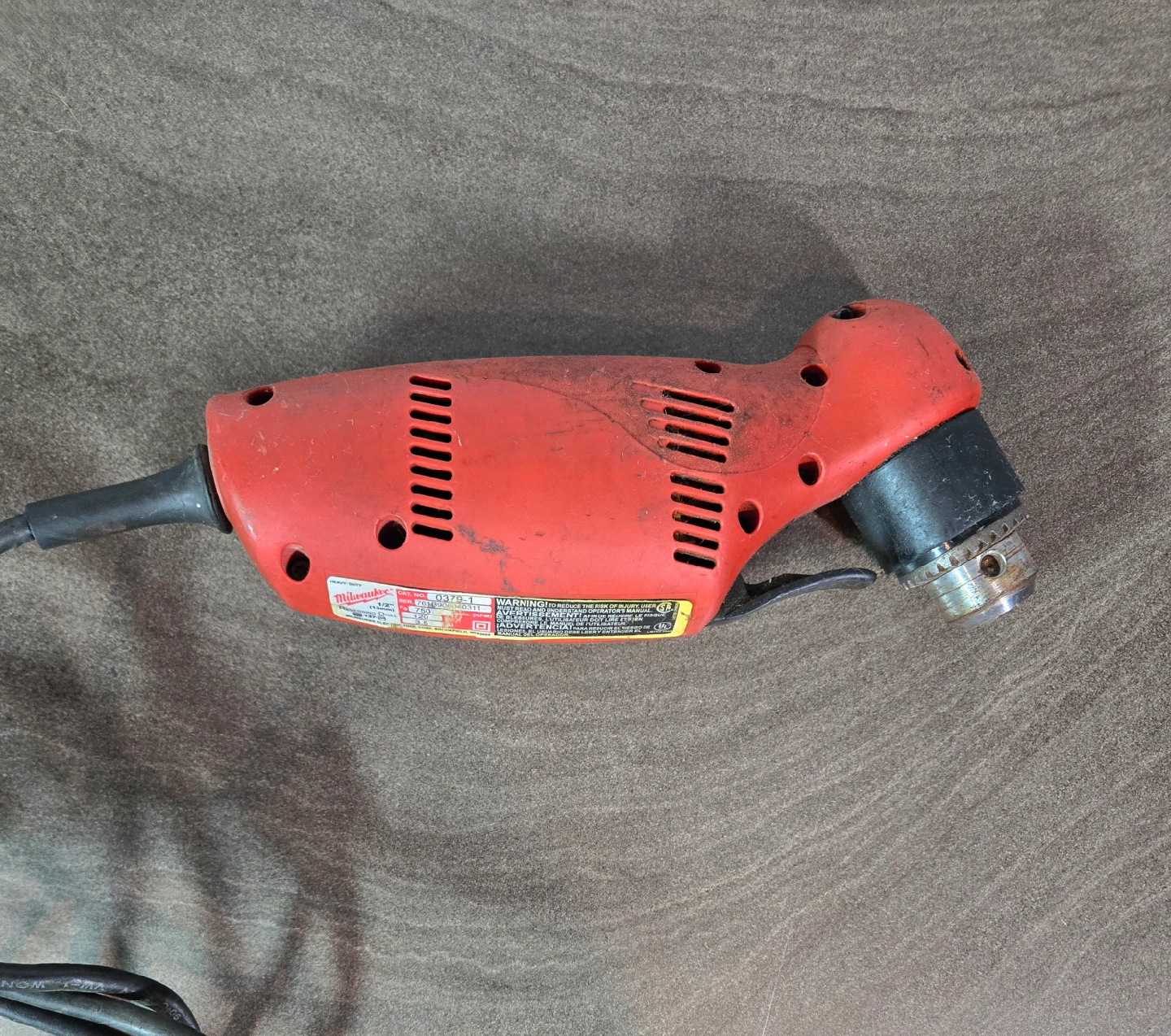 Milwaukee Close Quarter Angle Drill. Shows signs of wear, but it's still functional. Includes the chuck key. Model number is 0379-1. See picture 3 for more details. Cross-posted. 💥If you have a moment please have a look at my other items for sale.