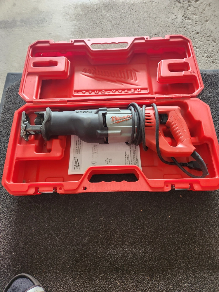 Selling a Milwaukee Sawzall reciprocating saw. Comes in its original red case. It appears to be in good condition and ready for your next project