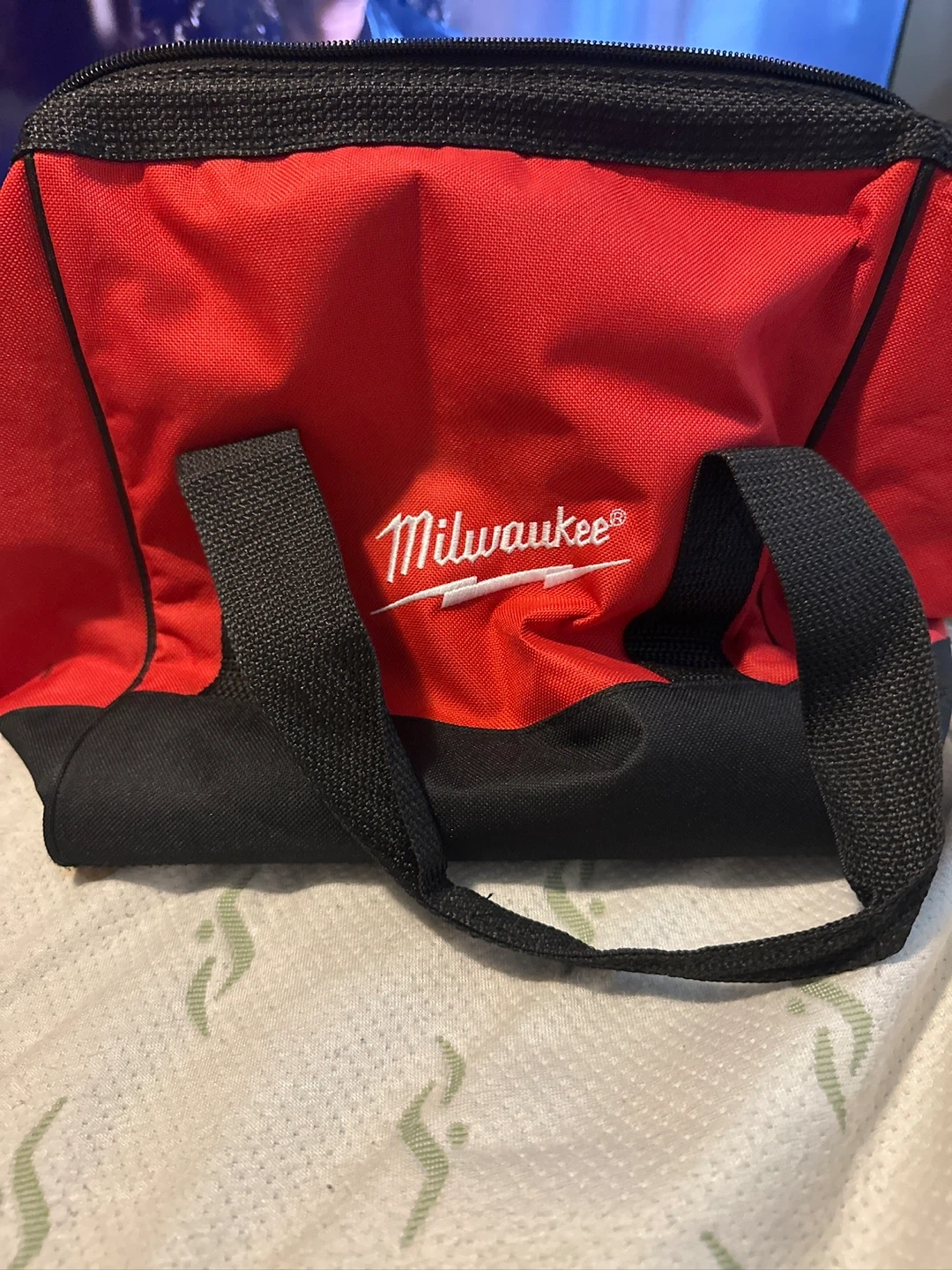 Selling a Milwaukee tool bag in red and black. It's in great shape and ready to hold your tools! Perfect for keeping everything organized whether you're a professional or just like to tinker around the house