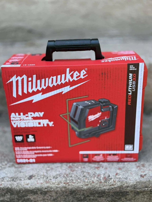 Brand new MILWAUKEE USB Rechargeable Green Cross Line Laser. Sealed in box.
