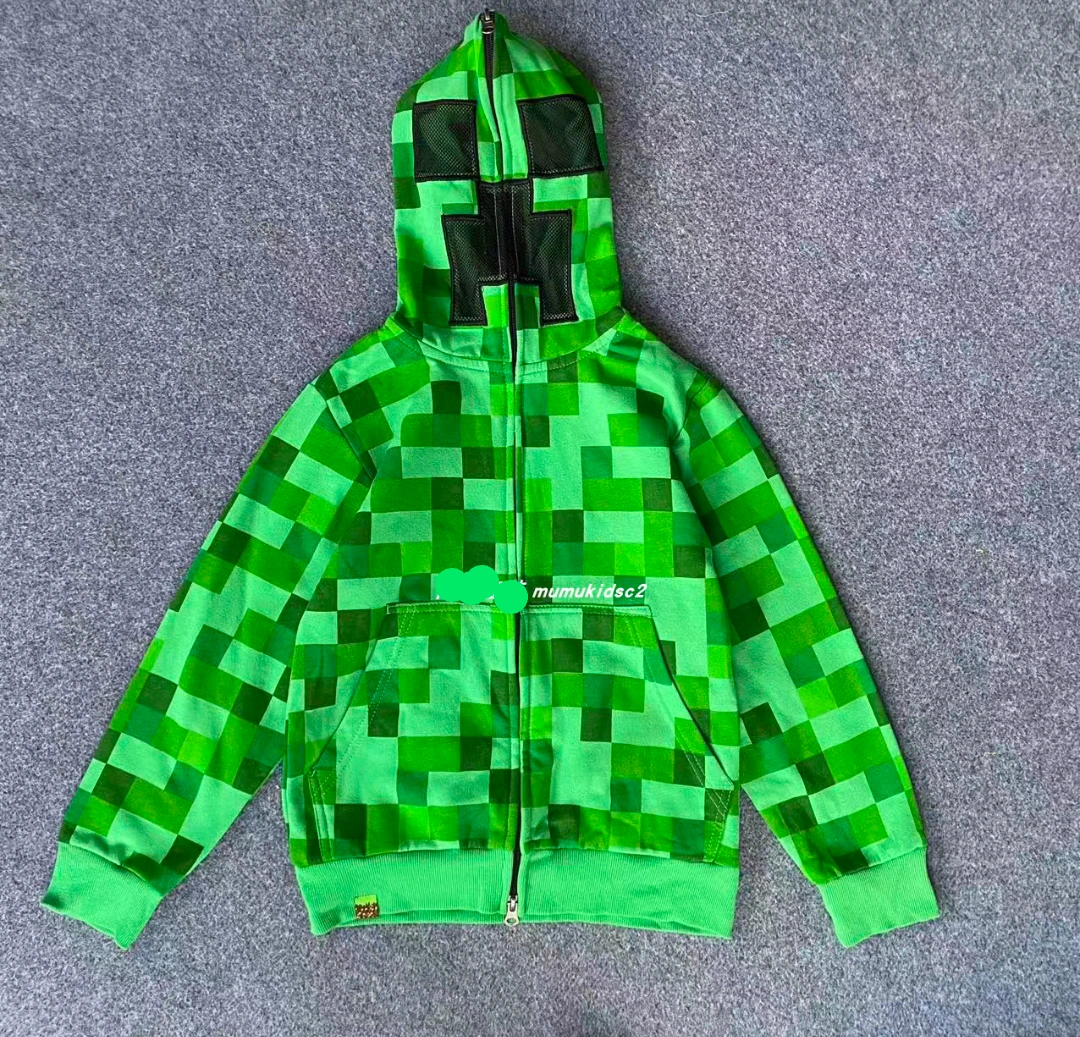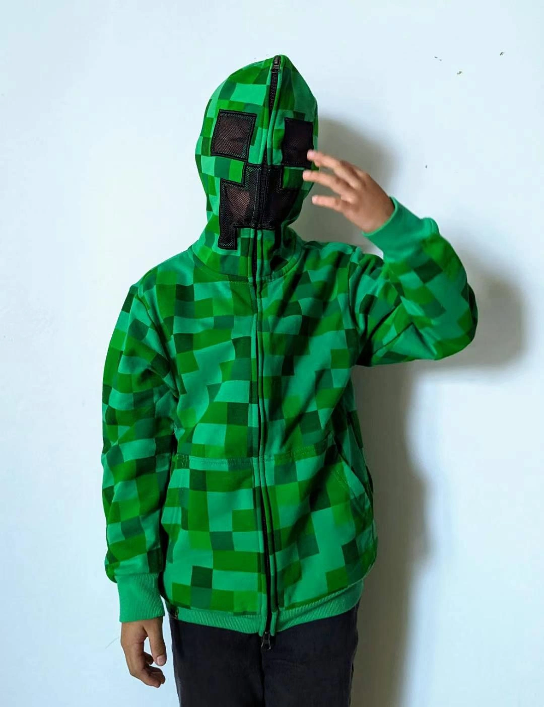Minecraft Creeper hoodie for Minecraft fans, fully zip up to cover face with the creeper design with mesh around eyes, great for Halloween and daily wear. Size 6-9Years.
