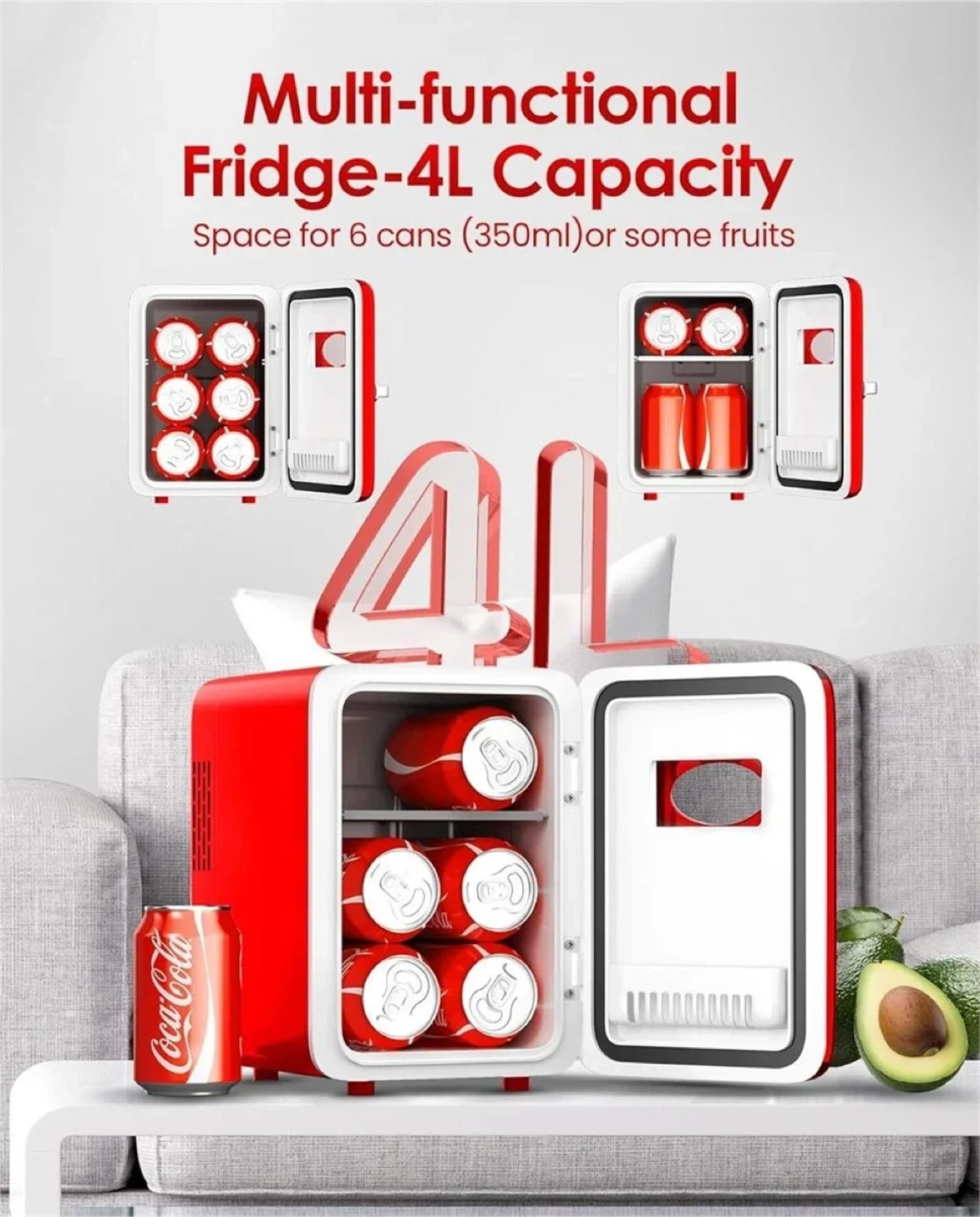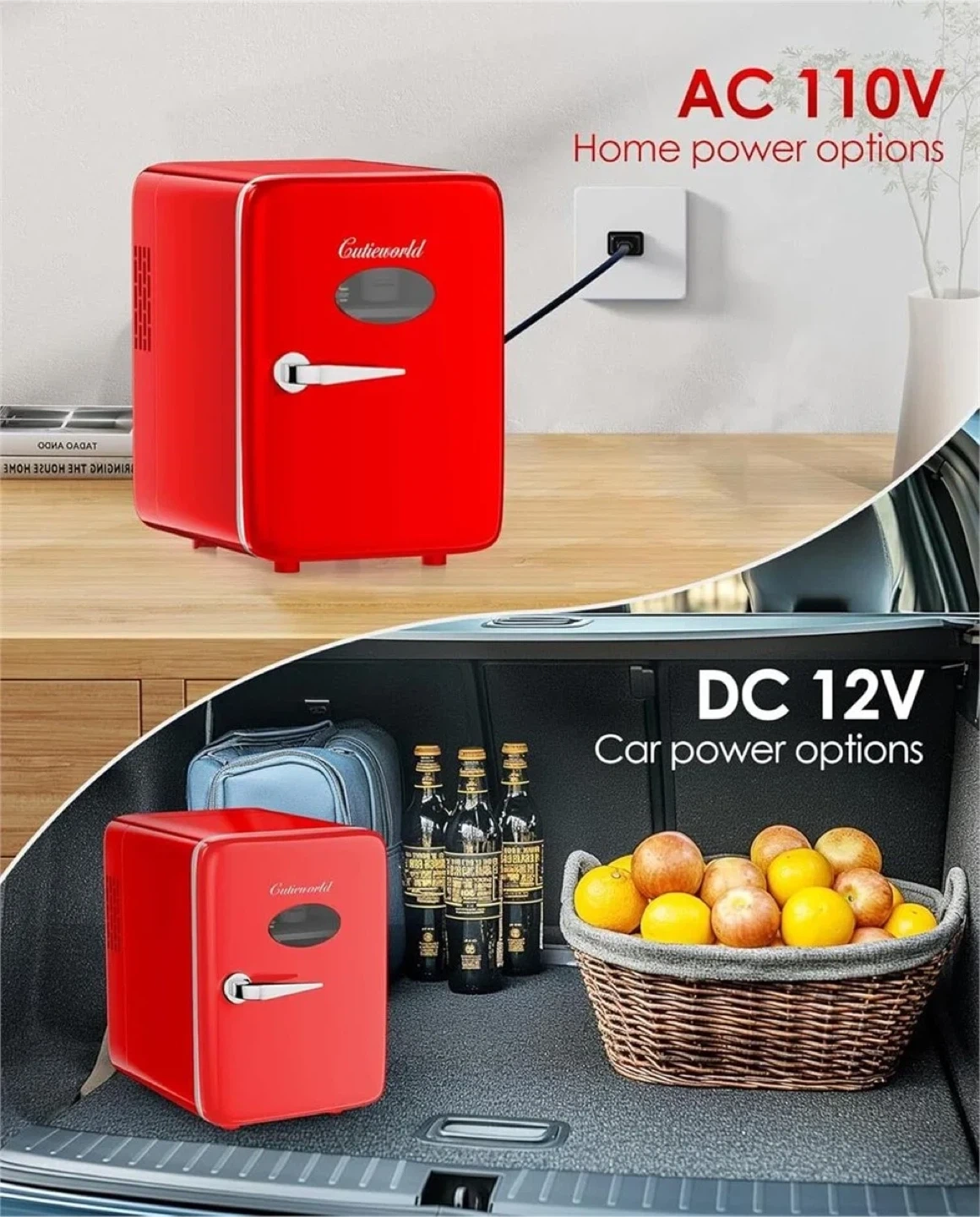 Keep your drinks and snacks cool with this Cutieworld mini fridge! It has a 4L capacity, perfect for storing up to 6 cans (350ml) or some fruits. Great for home or car use with AC 110V and DC 12V power options. It comes in its original box