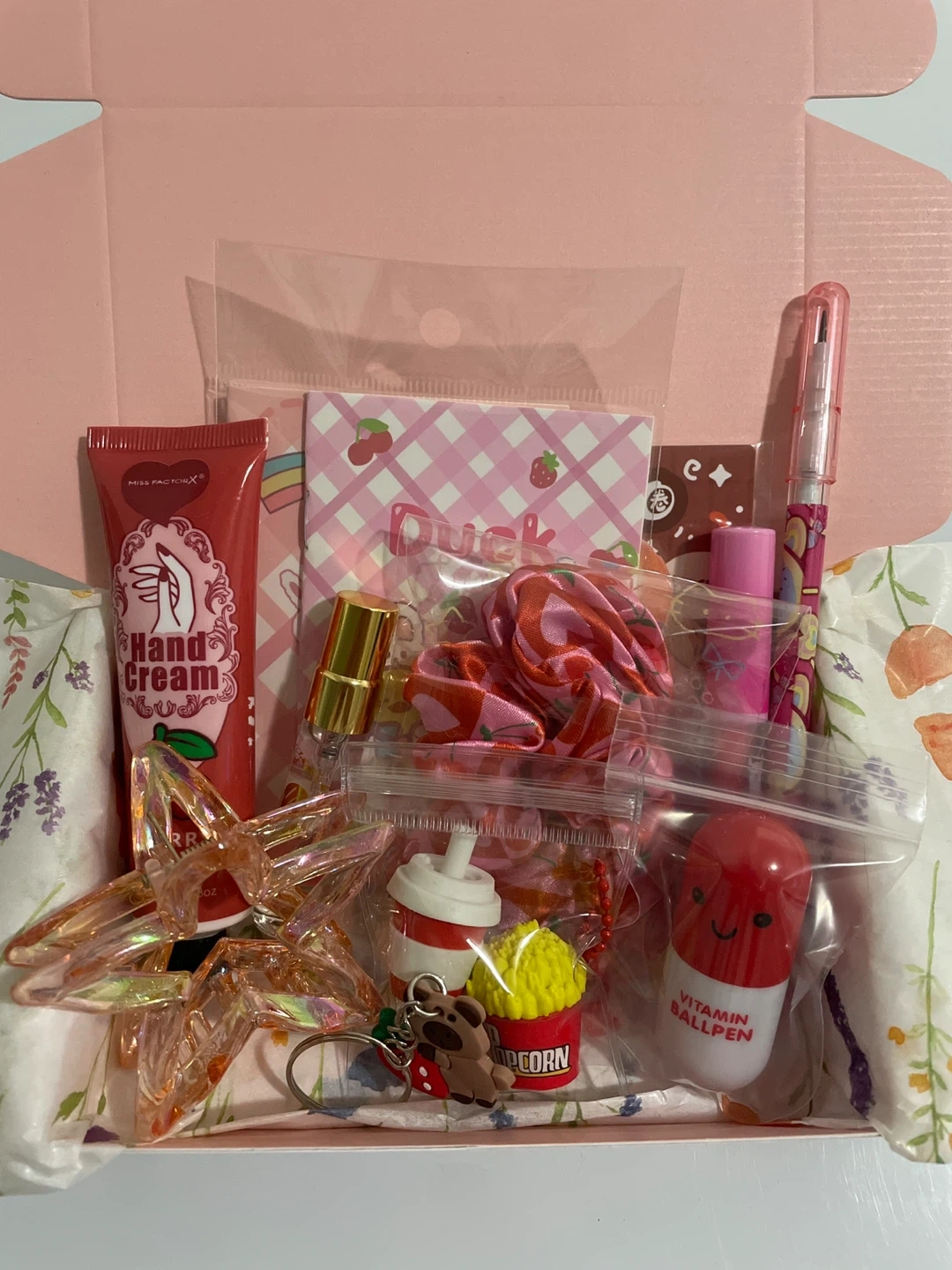 Selling a cute makeup and accessories gift box! It's brand new and perfect as a gift for someone special. Includes a hand cream, lipgloss, pen, hair accessories, and other adorable items. Comes in a pretty pink box with a ribbon Pick up only in Martindale NE