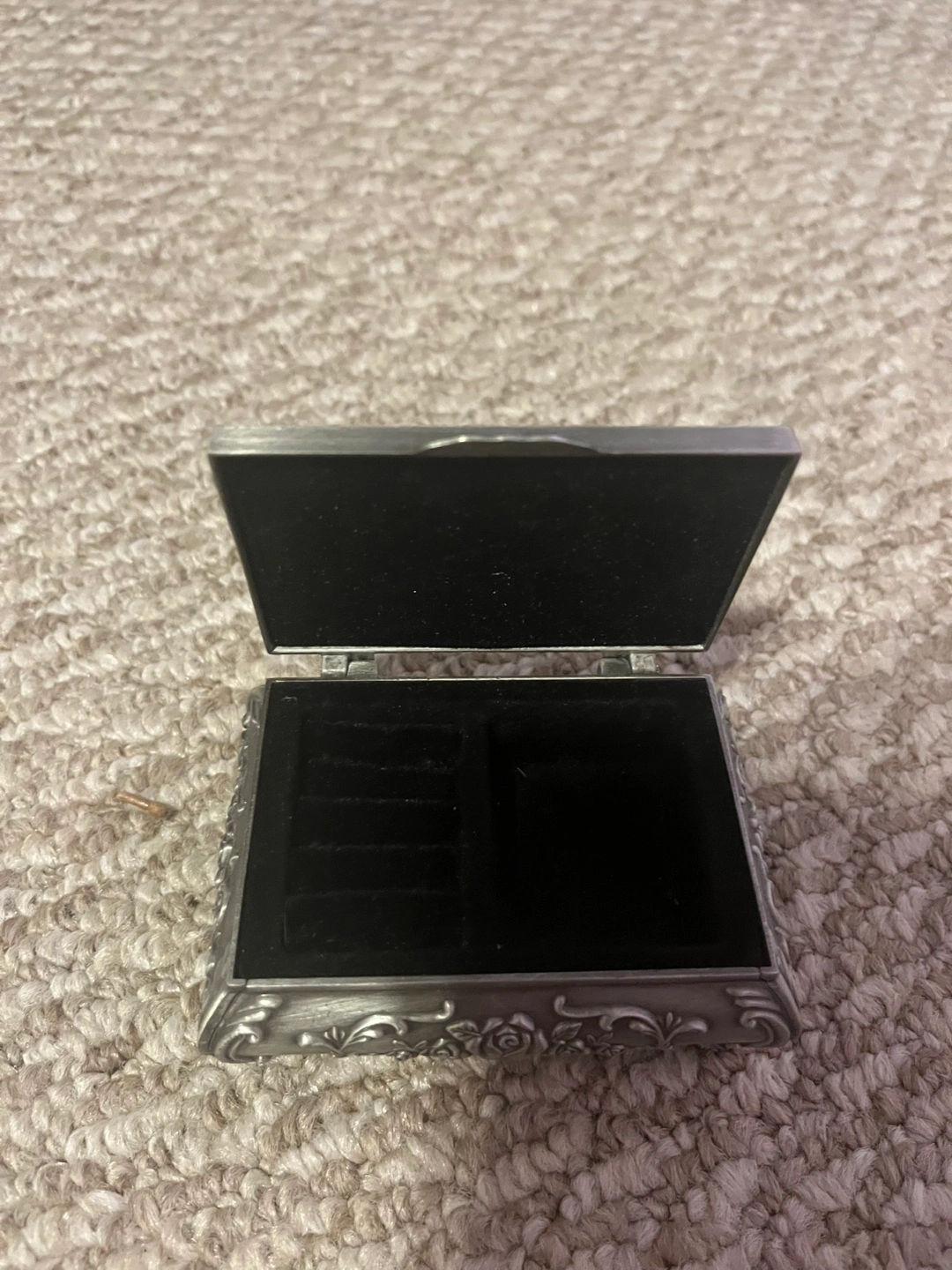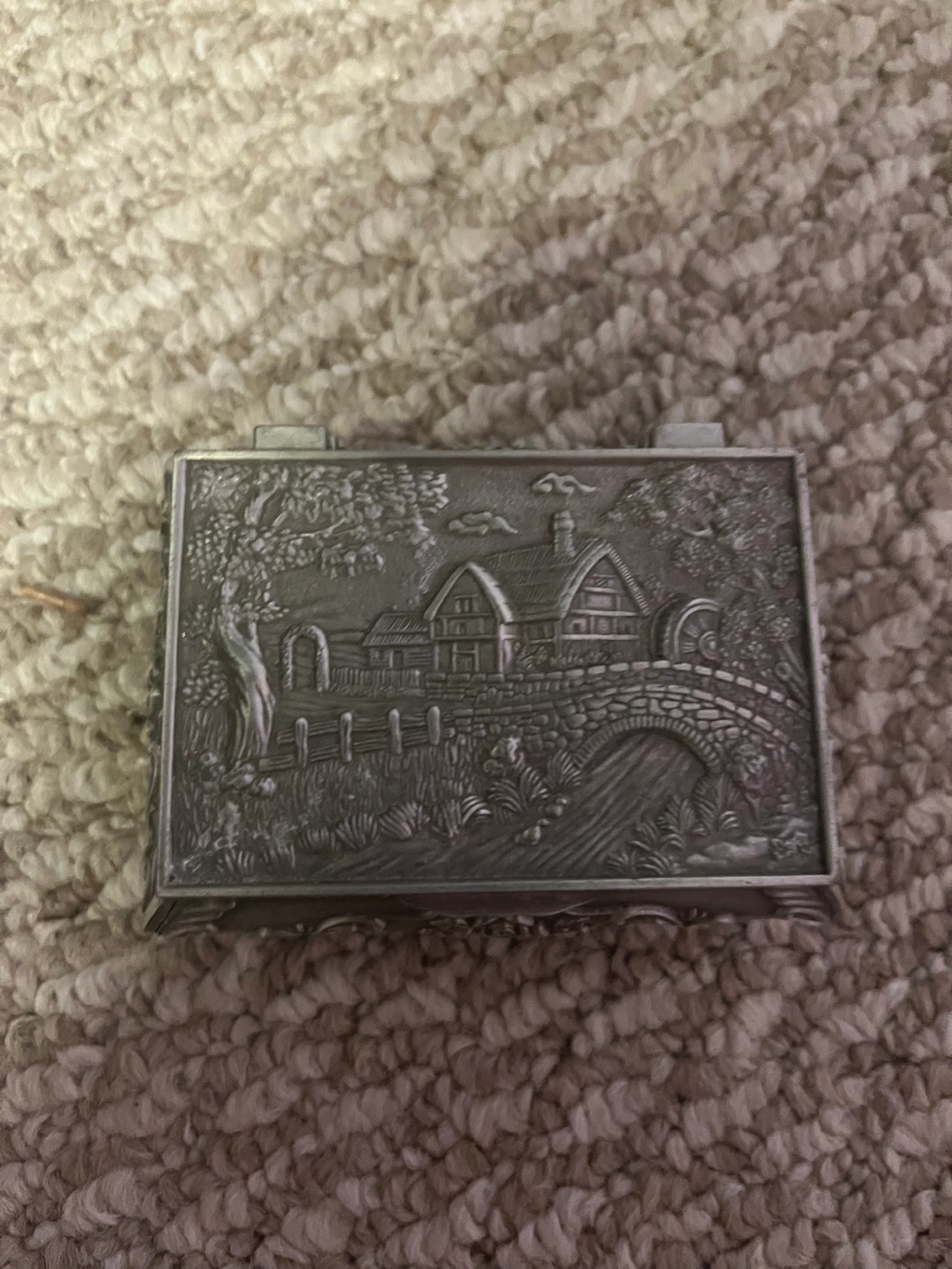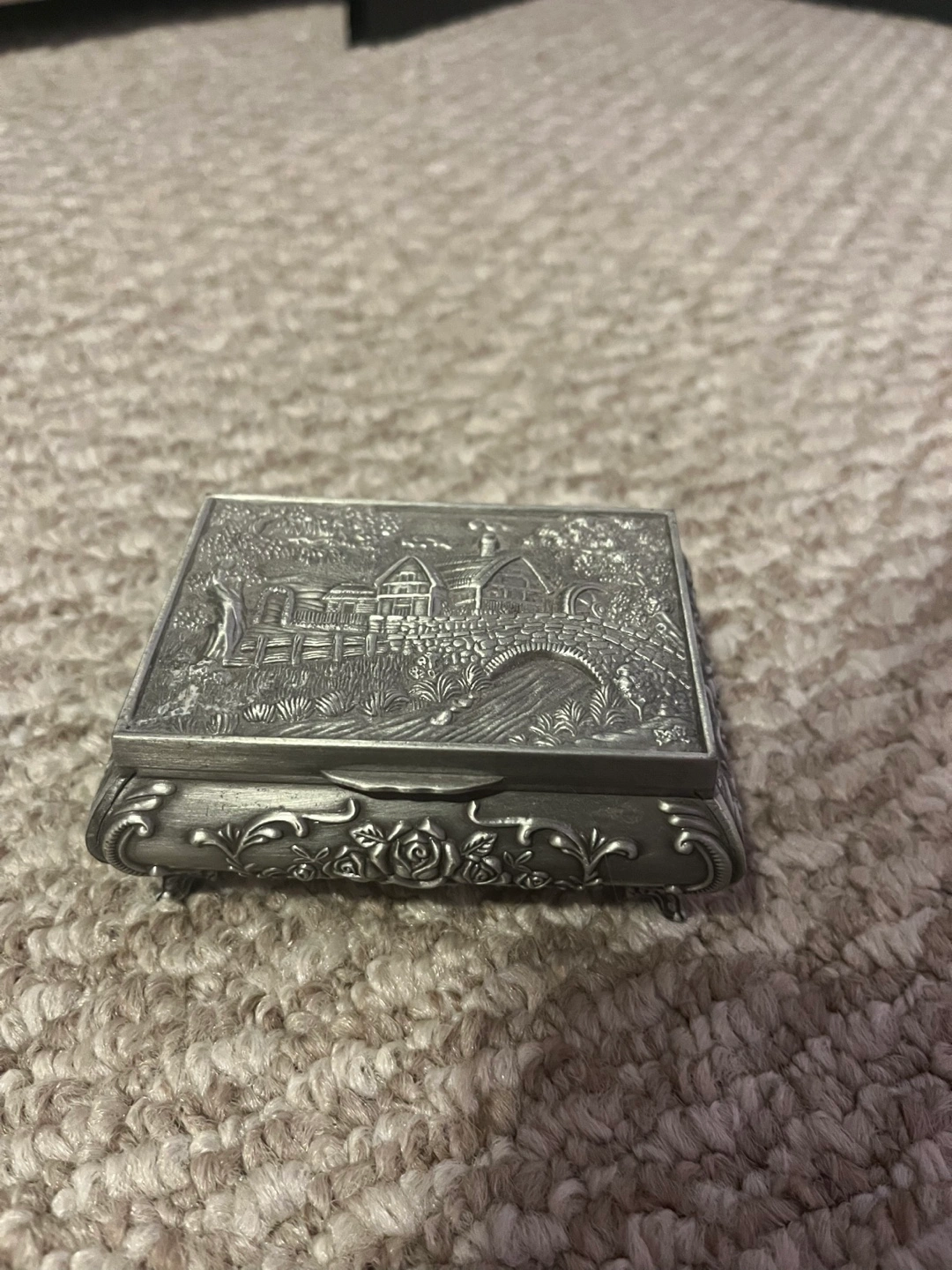 Mini silver Jewelry Holder, with little pictures all around it, Rarely used.