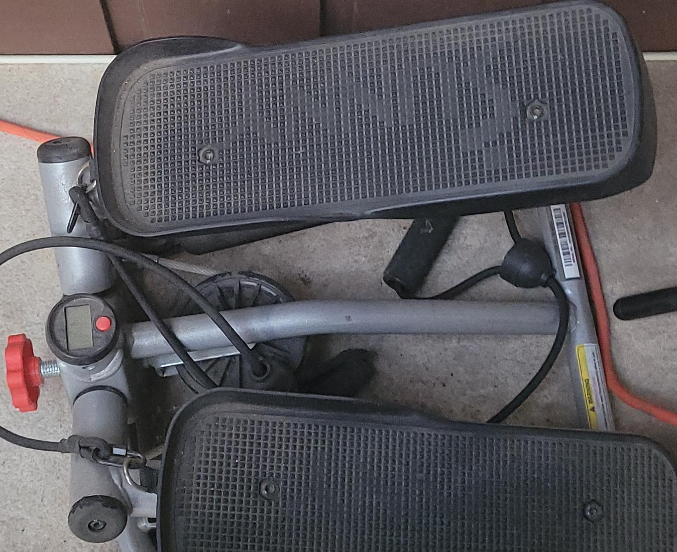 Selling a mini stepper that's great for a quick workout at home! It comes with resistance bands to add some extra challenge. It has a small digital display to track your steps and time. Perfect for small spaces!