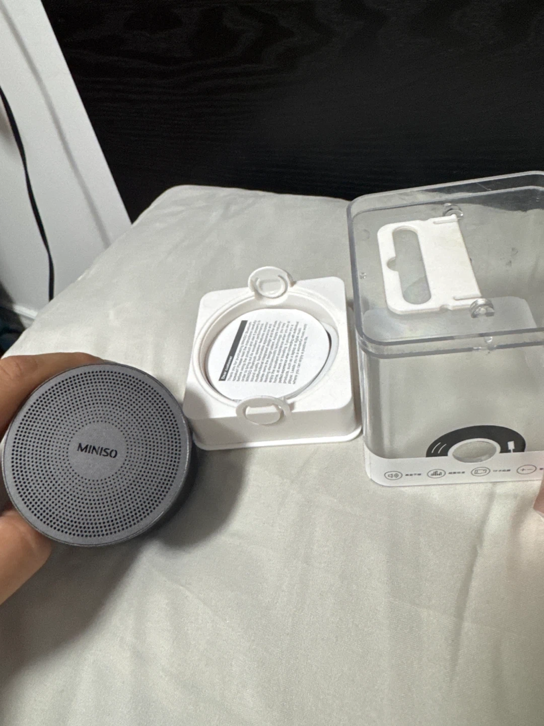 Selling a Miniso Bluetooth speaker in excellent condition! It comes with its original packaging. This compact speaker is perfect for on-the-go tunes or at-home listening. Check out the photos for details!