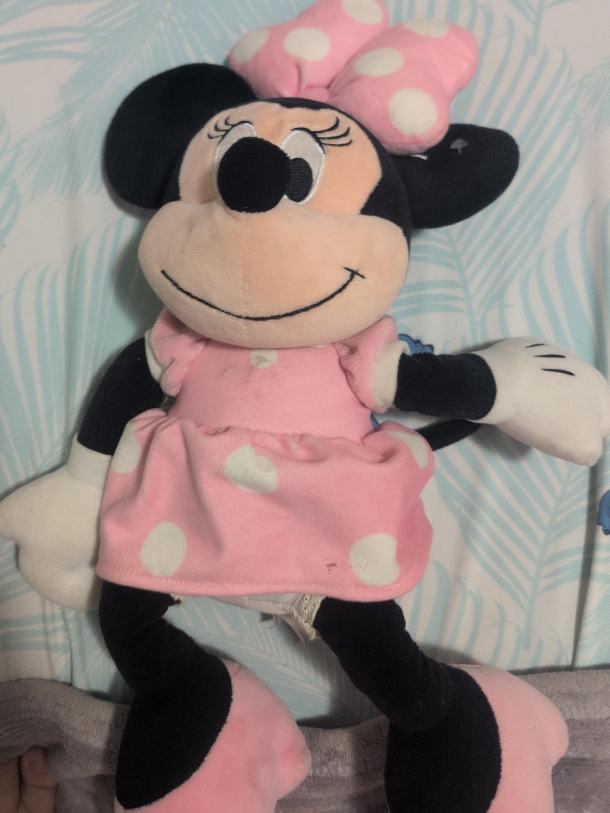 A cute Minnie Mouse plush toy looking for a new home! It's in good condition and ready for cuddles. Perfect for any Disney fan or as a gift for a little one
