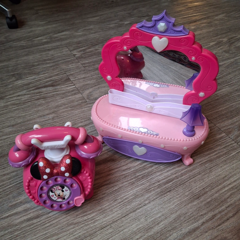 Disney Junior Minnie Mouse 1 - Rotary telephone set Coil cord cut off + scratch on receiver Otherwise works great 2 - Glam dressing tabletop Lamp lights up Will add some tiny accessories Pickup near Patterson Stn