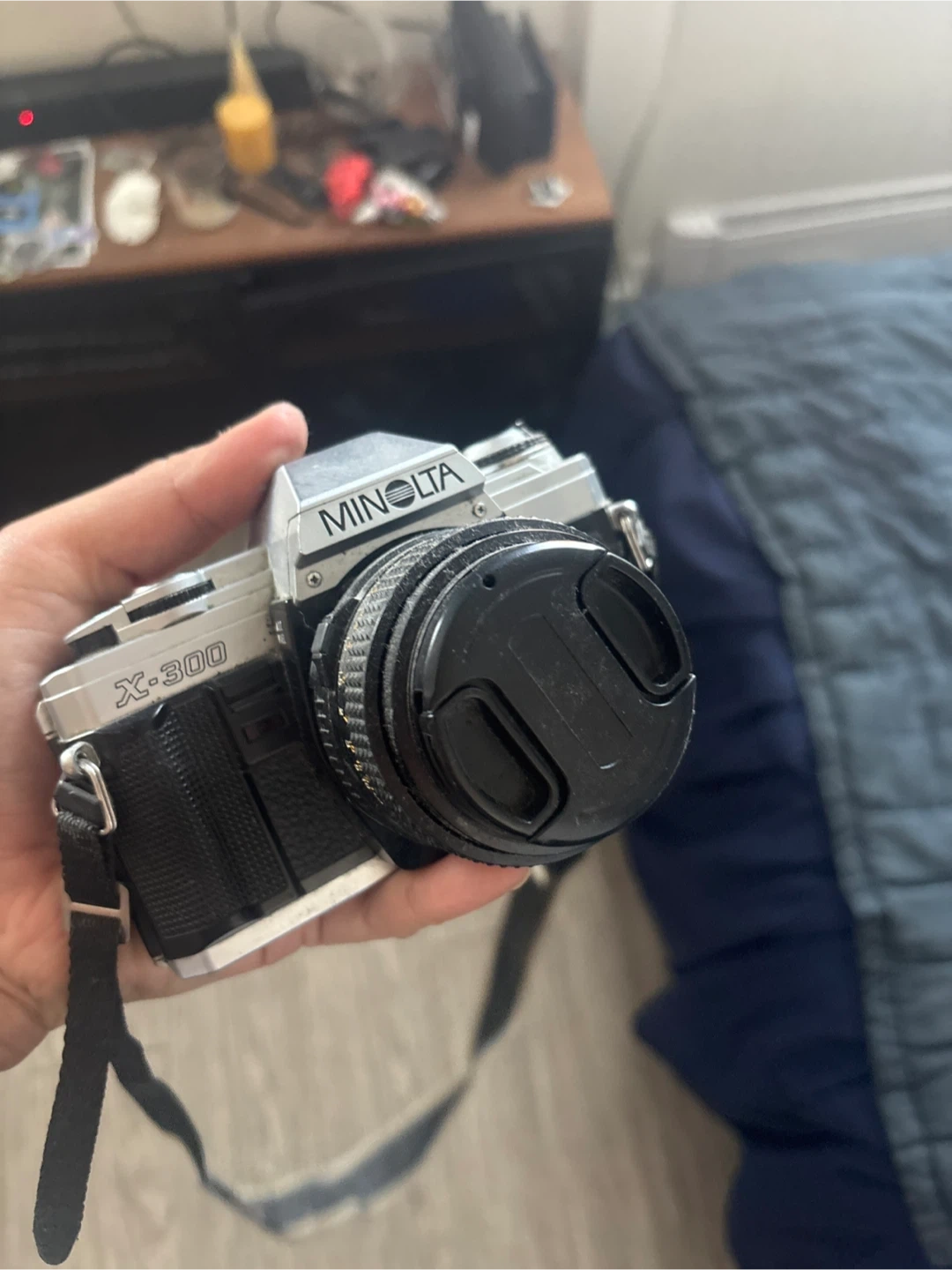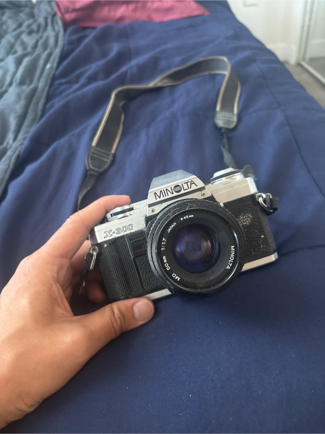 Selling a Minolta X-300 film camera + MD 50mm f/1.7 lens. It's in good condition and ready for your next photography adventure! It has a strap attached for easy carrying. Never used, and it’s been collecting dust.