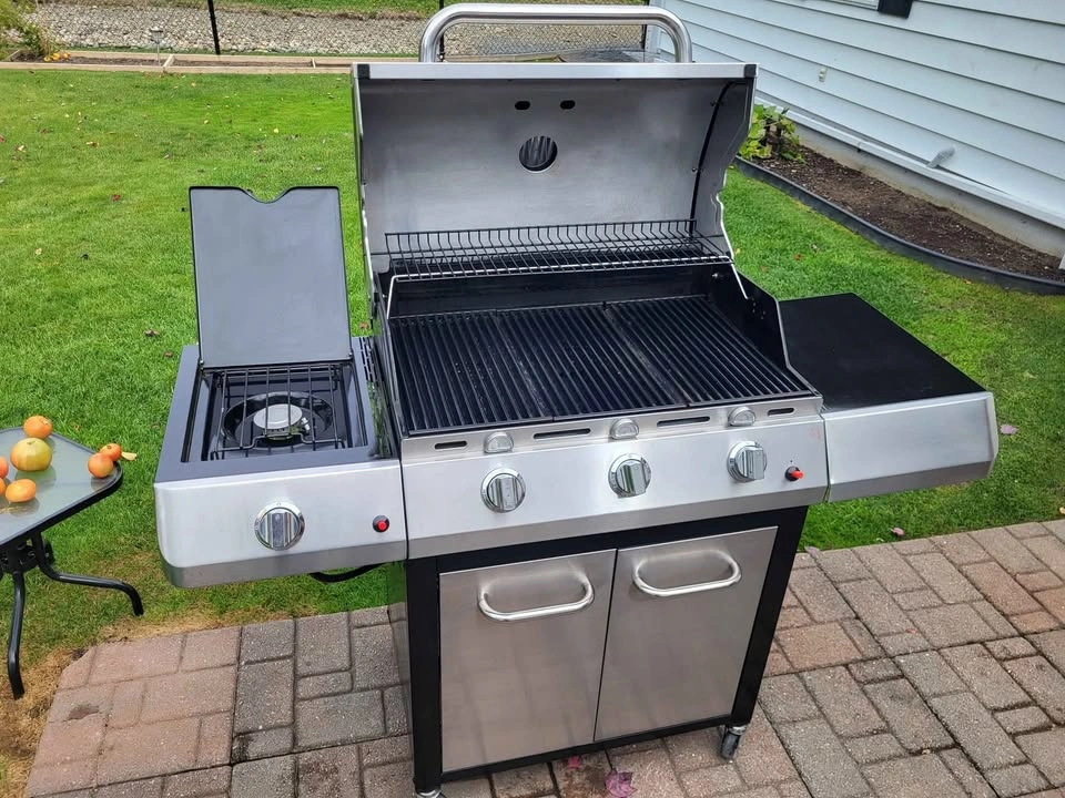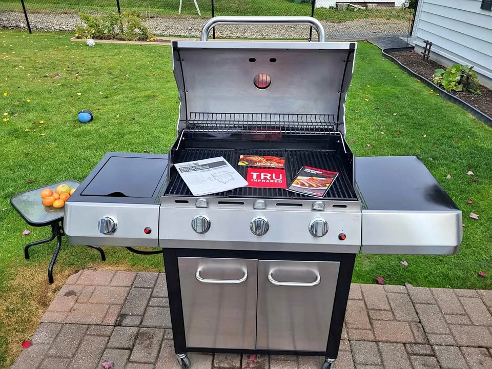 It's close to the end of the BBQ season for some but others BBQ all 4 seasons? You can see by the pics how well this was maintained & kept spotless. (Like new) I've spent more time cleaning it then cooking on it We are selling as it's too big for us as we have a table top unit we like using instead. It was originally a $700 BBQ...The first person with $350 cash takes it home. Comes with product guide & book on Grilling guide/suggestions. Tank not included.