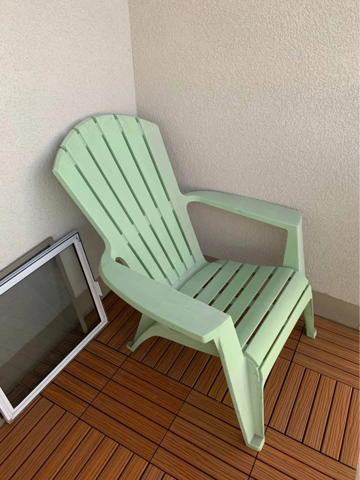 Add comfort and style to your balcony or patio with this beautiful mint green plastic Adirondack chair. Itβs lightweight, weather-resistant, and easy to clean β perfect for relaxing outdoors or creating a cozy corner. β Sturdy and comfortable design β Fade-resistant plastic material β Great for balcony, backyard, or garden use β Easy to move and store Condition: Gently used and in excellent shape. Pickup at Yonge & Eglinton