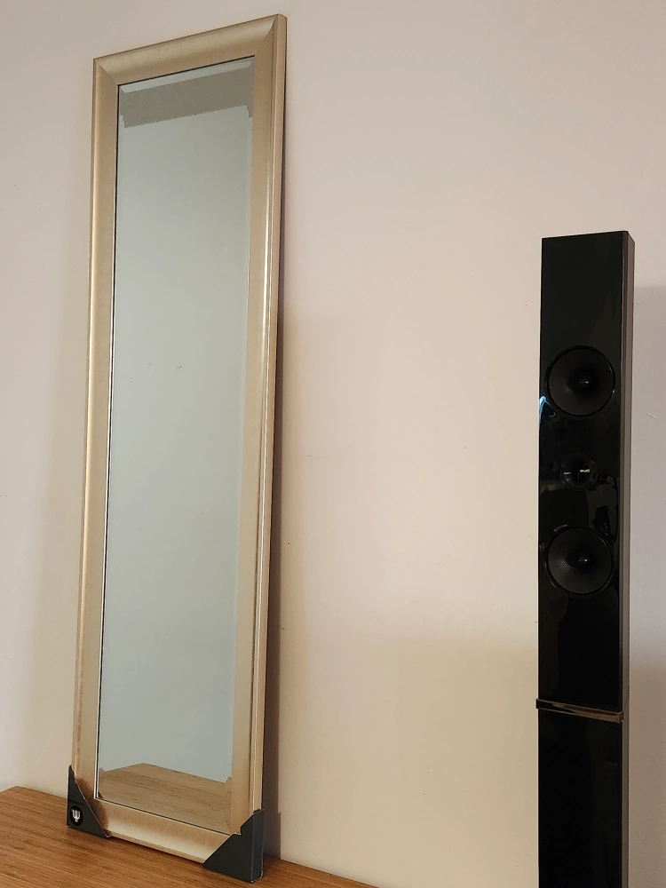 New large Mirror in Box with hanging. Beautiful mirror in new condition Can use as a decorative mirror for designing you home, wall mirror, full Length mirror, over the door mirror,or bathroom Mirror Golden beige 15.5" ×51.3" Can use horizontal or vertical Pick up location Near Yonge and Sheppard