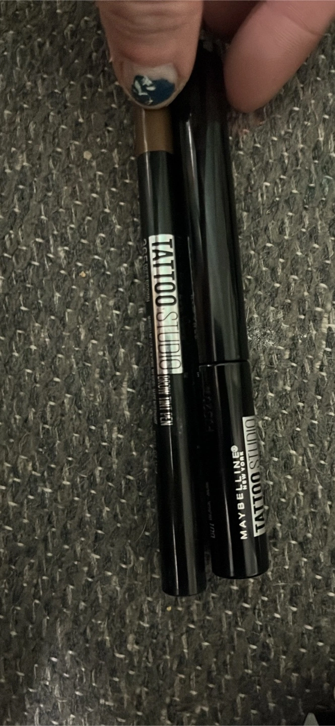 Brown eyebrow tattoo and pencils Coverup . Eyelashes &lipstick