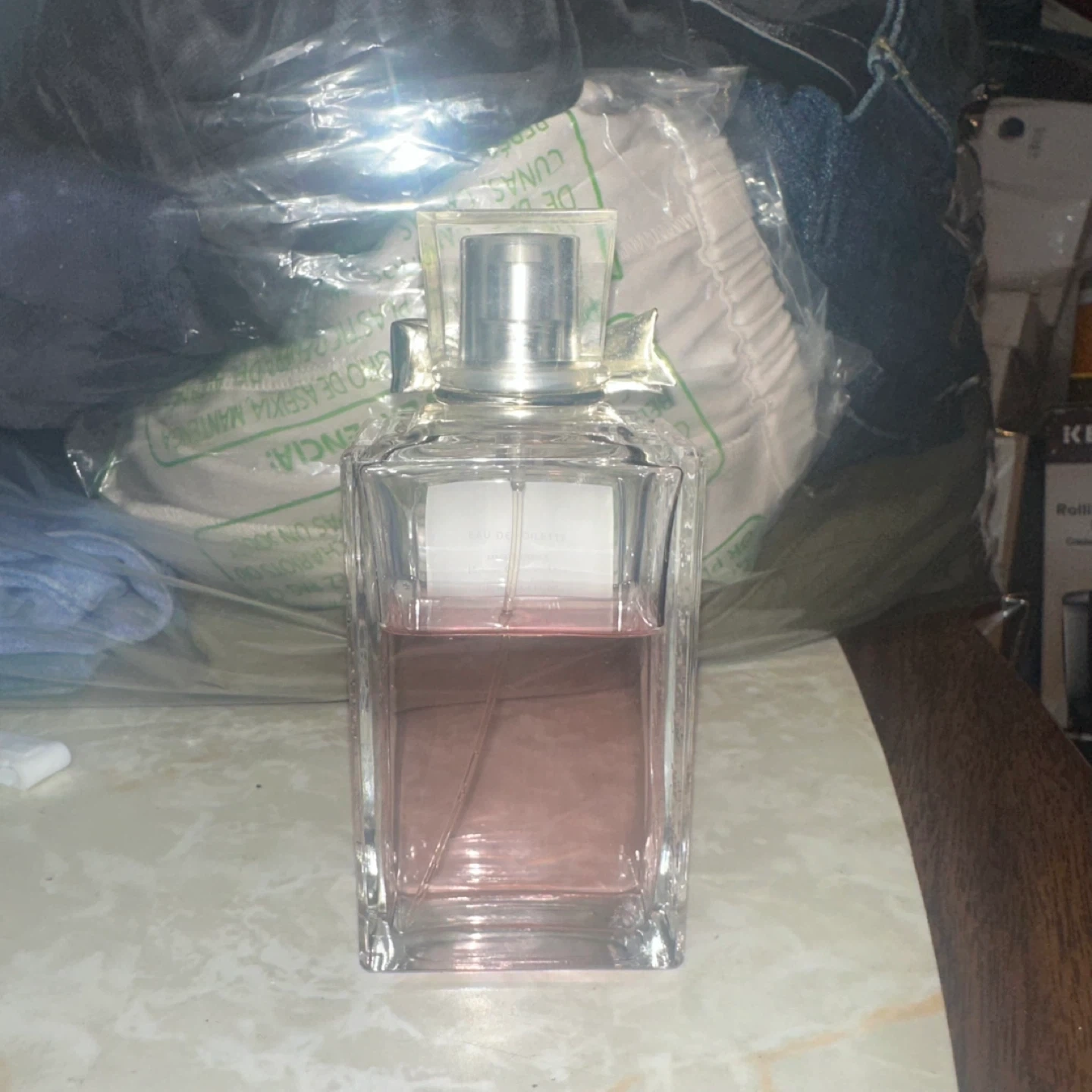 About quarter used, a lot left Retail 225 Selling a bottle of Miss Dior Rose N'Roses perfume! It's a lovely scent and the bottle is in great condition. Perfect for everyday wear or a special occasion