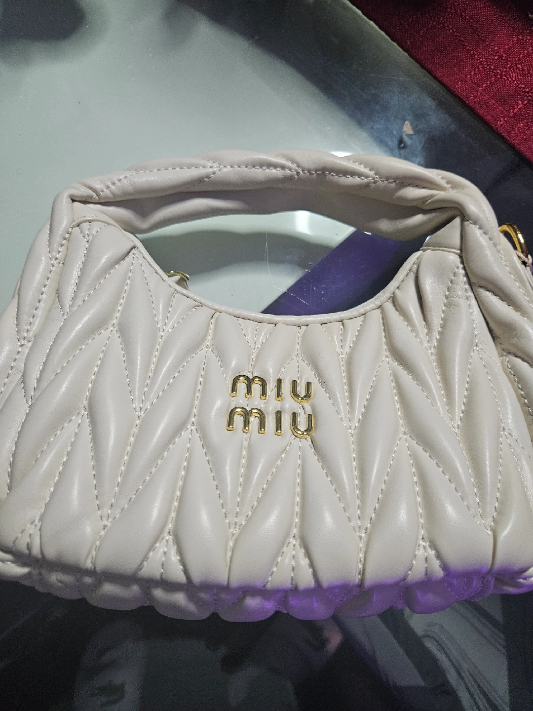 Selling a beautiful Miu Miu handbag! It's a lovely white colour and made of soft leather. This bag is in great condition and ready for a new home!