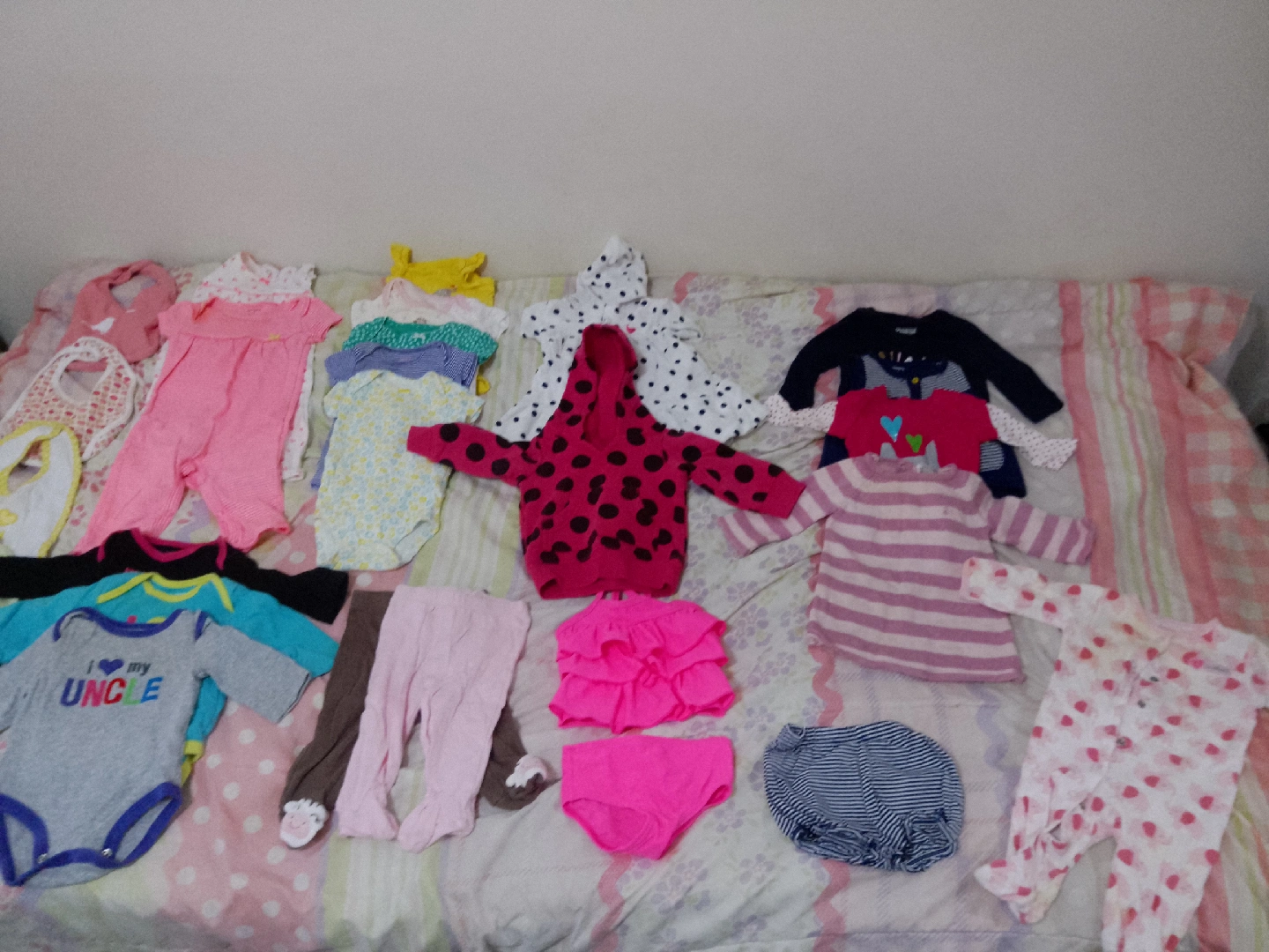 Selling a bundle of gently used baby clothes! Includes a variety of items like onesies, leggings, tops, and bibs. Clothing is all tagged as 3 Months. All in good condition and ready for a new home. Different sizes included.