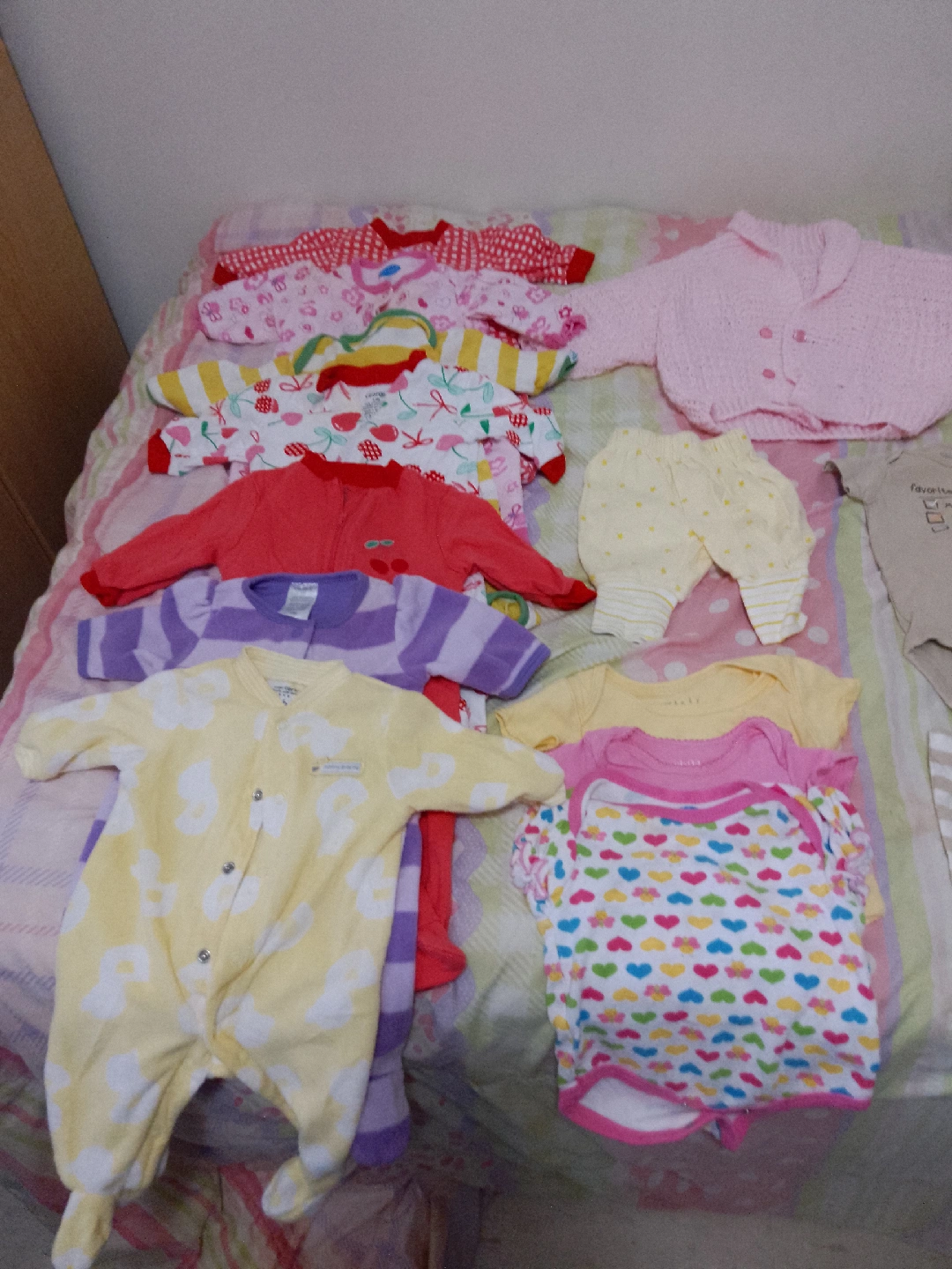 Selling a bundle of gently used baby clothes, perfect for newborns up to 3 months old! Includes a variety of onesies, pants, shirts, and sweaters in different colours and patterns. All in great condition and ready for a new little one