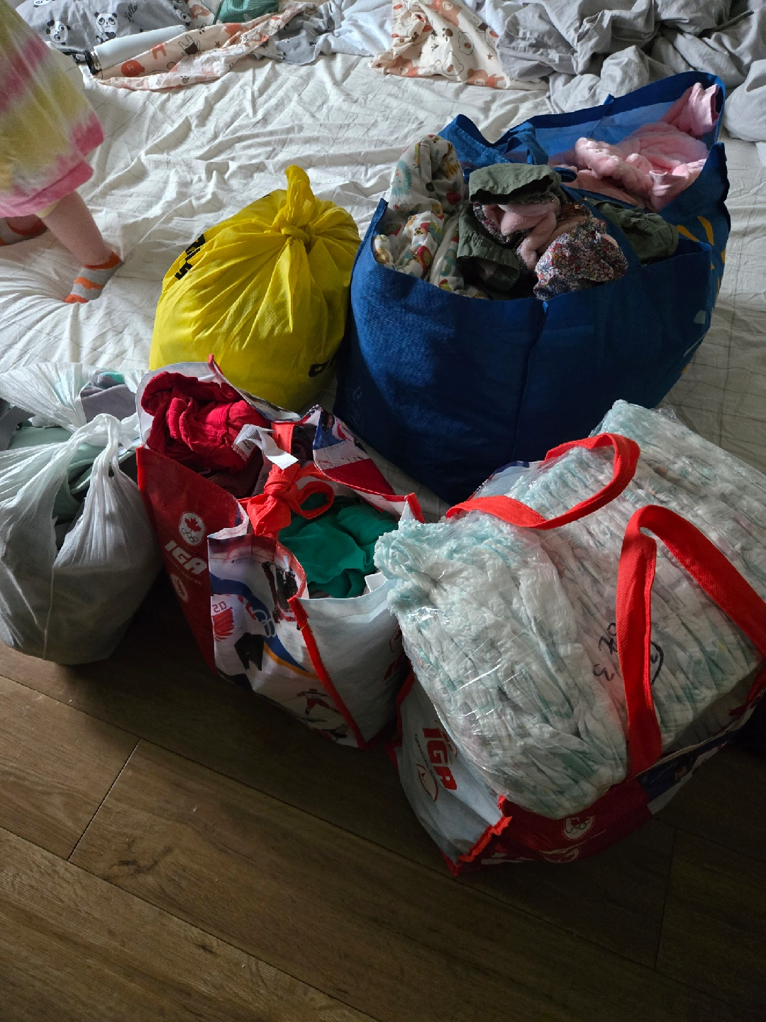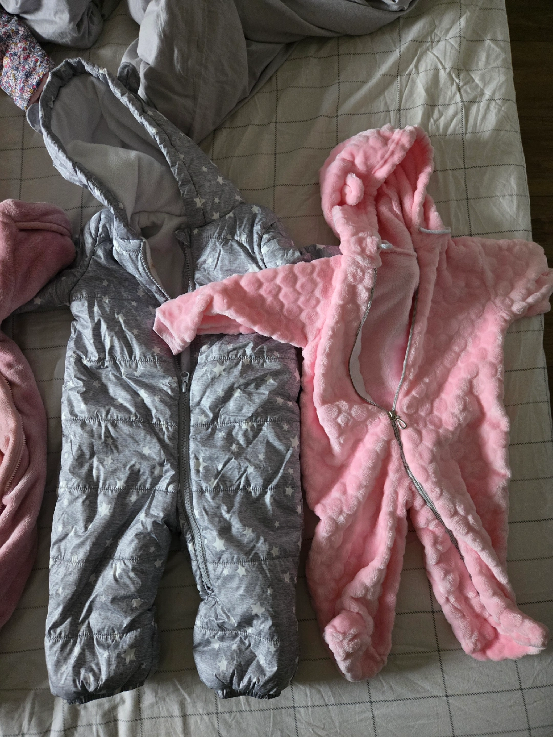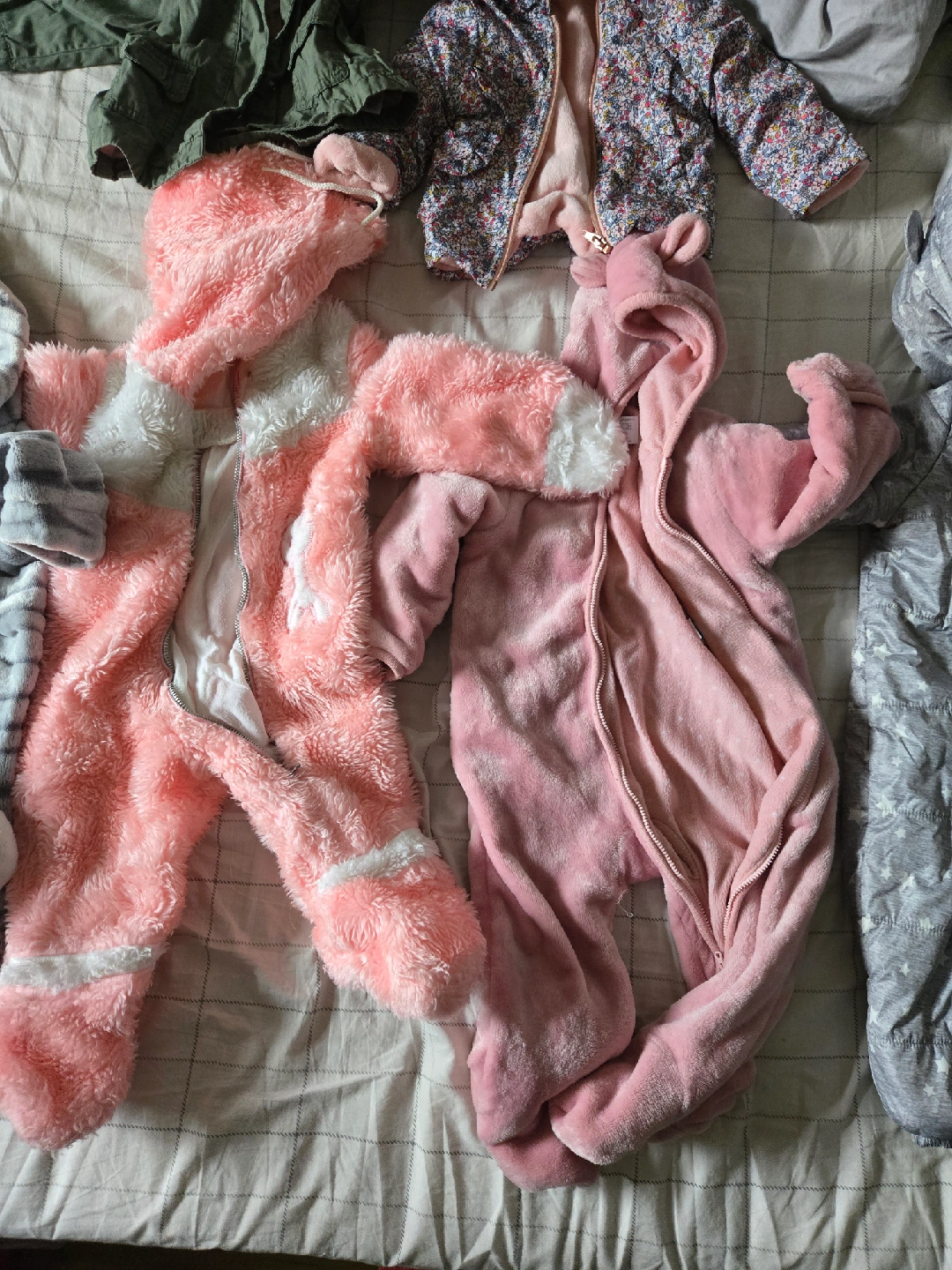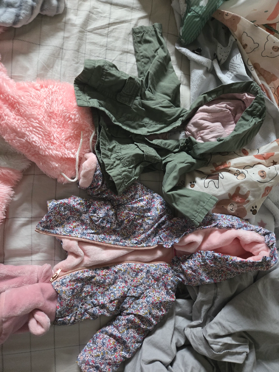 A mixed lot of baby clothing and diapers. Includes a variety of items such as clothing, jackets, and diapers 2,3,2Т-3Т. All in good condition and ready for a new home!