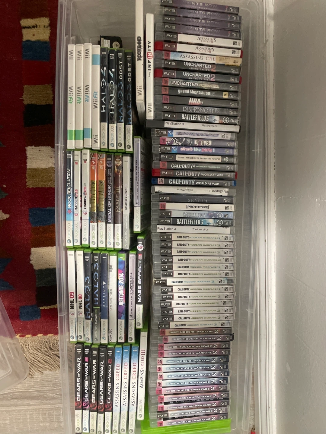 There’s a bunch of xbox360, ps3 and a few Wii games. $5 for each game $15 for controllers - can offer if you want:)