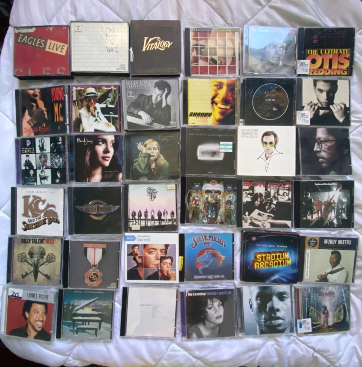 Selling a collection of CDs featuring various artists and genres! Includes albums from: - Eagles - Pink Floyd - Vitalogy - Billy Joel - Young M.C. - Norah Jones - Talking Heads - Shaggy - Steve Miller Band - Elton John - Red Hot Chili Peppers - And many more!