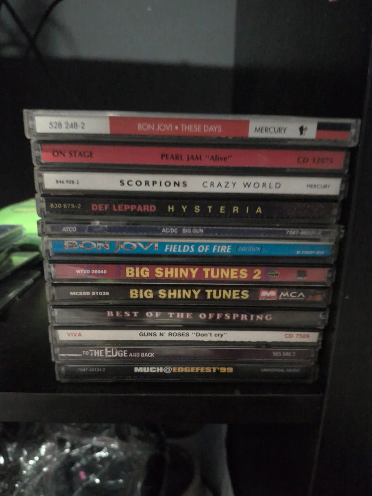 Selling a collection of CDs! Includes: - Bon Jovi - These Days - Pearl Jam - Alive - Scorpions - Crazy World - Def Leppard - Hysteria - AC/DC - Big Gun - Bon Jovi - Fields of Fire - Big Shiny Tunes 2 - Big Shiny Tunes - Best of the Offspring - Guns N' Roses - Don't Cry - To The Edge and Back - Much @ Edgefest '99