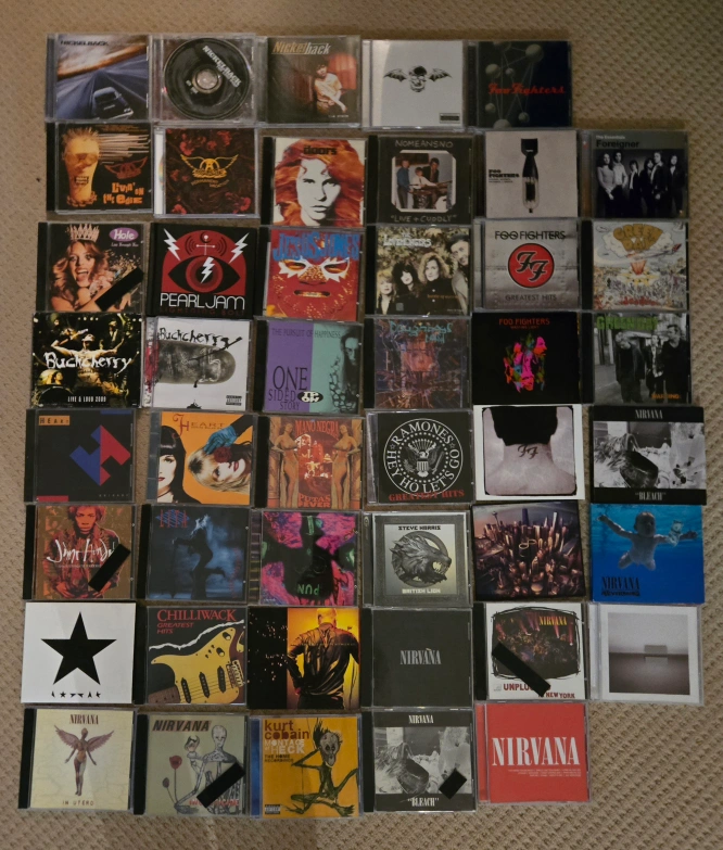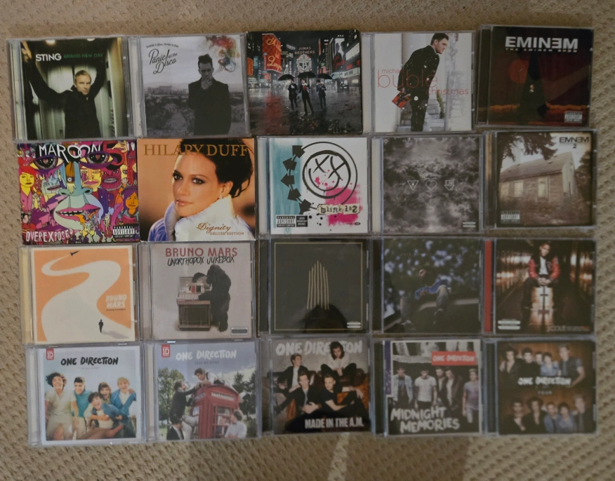 Selling a collection of CDs from various artists. Includes a mix of genres and popular bands like Sting, Maroon 5, Eminem, Queen, Nirvana, and more! Great for music lovers looking to expand their collection. Condition is good, with some wear on the cases but the CDs themselves are in playable condition All the right reasons- Nickelback The long road - Nickelback The State - Nickelback Avenged sevenfold Avenged sevenfold The colour and the shape-Foofighters Livin' on the edge- Aerosmith Permanent Vacation - Aerosmith The Doors Live + cuddly- Nomeansno Echoes, Silence, Patience & Grace - FooFighters The Essentials- Foreigner Lightning bolt - Pearl Jam Perverse - Jesus Jones Battle of evermore-Lovemongers Greatest hits - Foofighters Dookie- Green day Live and loud 2009- Buckcherry 15- Buckcherry One sided Story- Pursuit of Happiness Crush- Doughboys Wasting Light- foo fighters warning- Green Day Brigade - Heart Desire Walks on - Heart Puta's Fever - Mano Negra Greatest hit - Ramones There is nothing left to lose -Foo fighters The Ultimate experience-Jimi Hendrix Dangerous curves - Lita Ford Zootopia-U2 British Lion - Steve Harris Sonic Highway - Too fighters Nevermind - Nirvana Greatest hits- chilliwack Live Between Us - Tragically Hip Nirvana-Nirvana No lines on the Horizon - U2 Montage of heck - Kurt Cobain Icon- Nirvana Brand New day-sting Too weird to live, too rare to die -Panic at the disco A little bit longer - Jonas Brothers Christmas - Michael Buble The Eminem show - Eminem Overexposed - Maroons Dignity- Hilary duff Marshall 2 mathers- Eminem I love you- The Neighbourhood Doo-wop s hooligans - Bruno mars Unorthodox Jute bot - Bruno Mars Born sinner - J cole 2014 Forest hills drive- j cole cole world- J Cole Up all Night - one direction Take me home- one direction Made in the AM- One direction Midnight memories-One direction Four- One direction