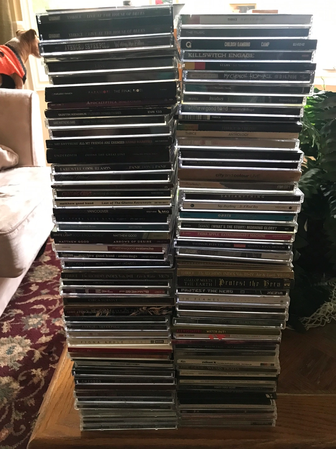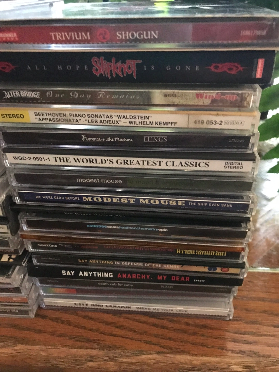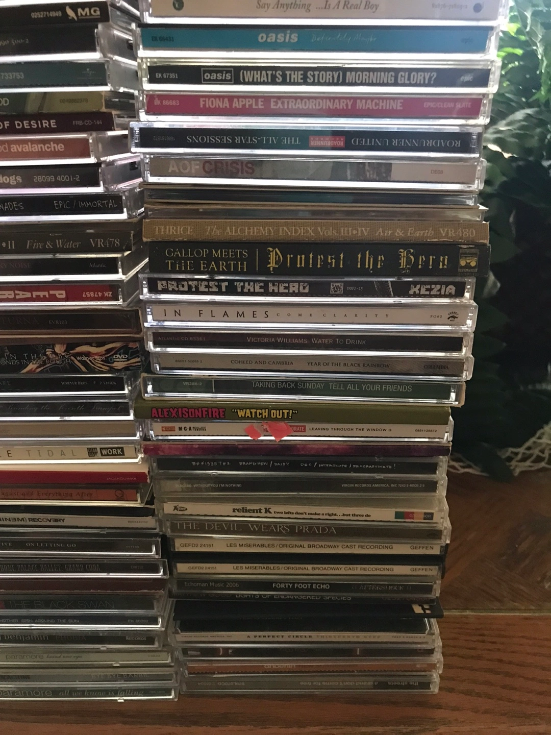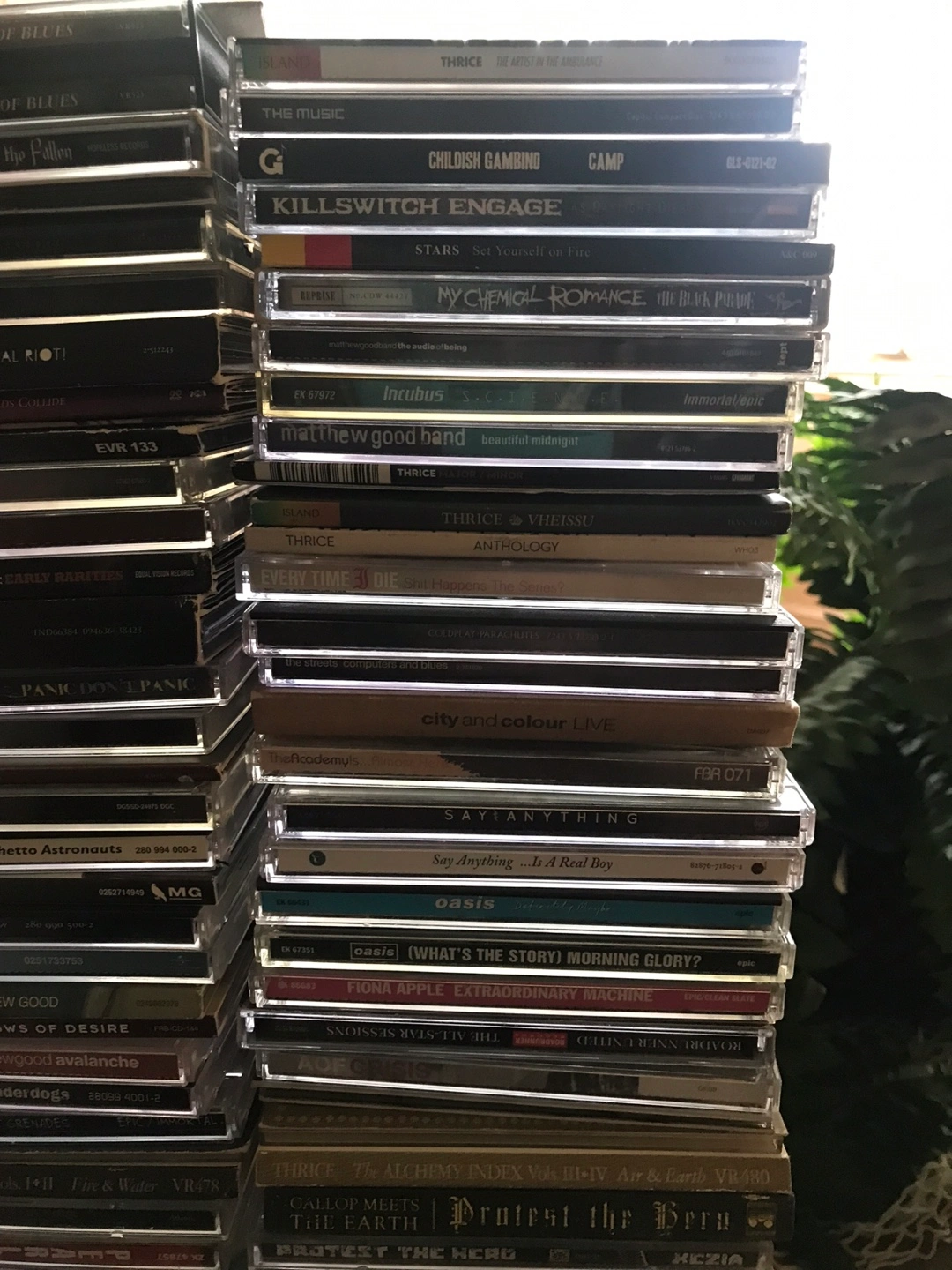 4$ each. Selling a large collection of mixed CDs. Includes artists like Thrice, Avenged Sevenfold, Paramore, and many others. Great for anyone looking to expand their music library!