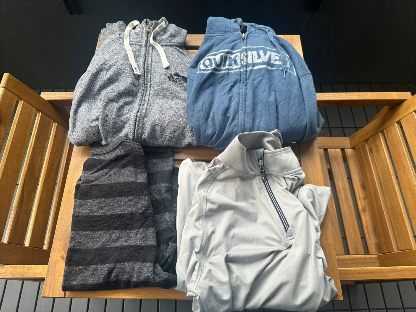 Selling a mixed lot of clothing! Includes items from brands like Quiksilver and Hurley. Various sizes and styles, perfect for adding some variety to your wardrobe. All in good used condition and ready for a new home! Lot of Mens Medium/Small Shirts + Hoodies + Shorts + Pants. All fit like mens medium. Selling as a lot or separately.