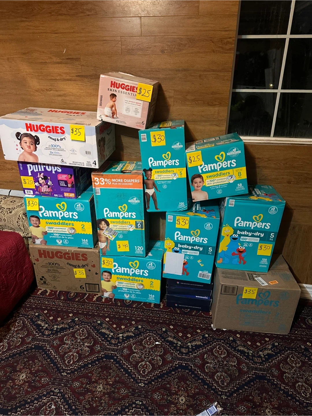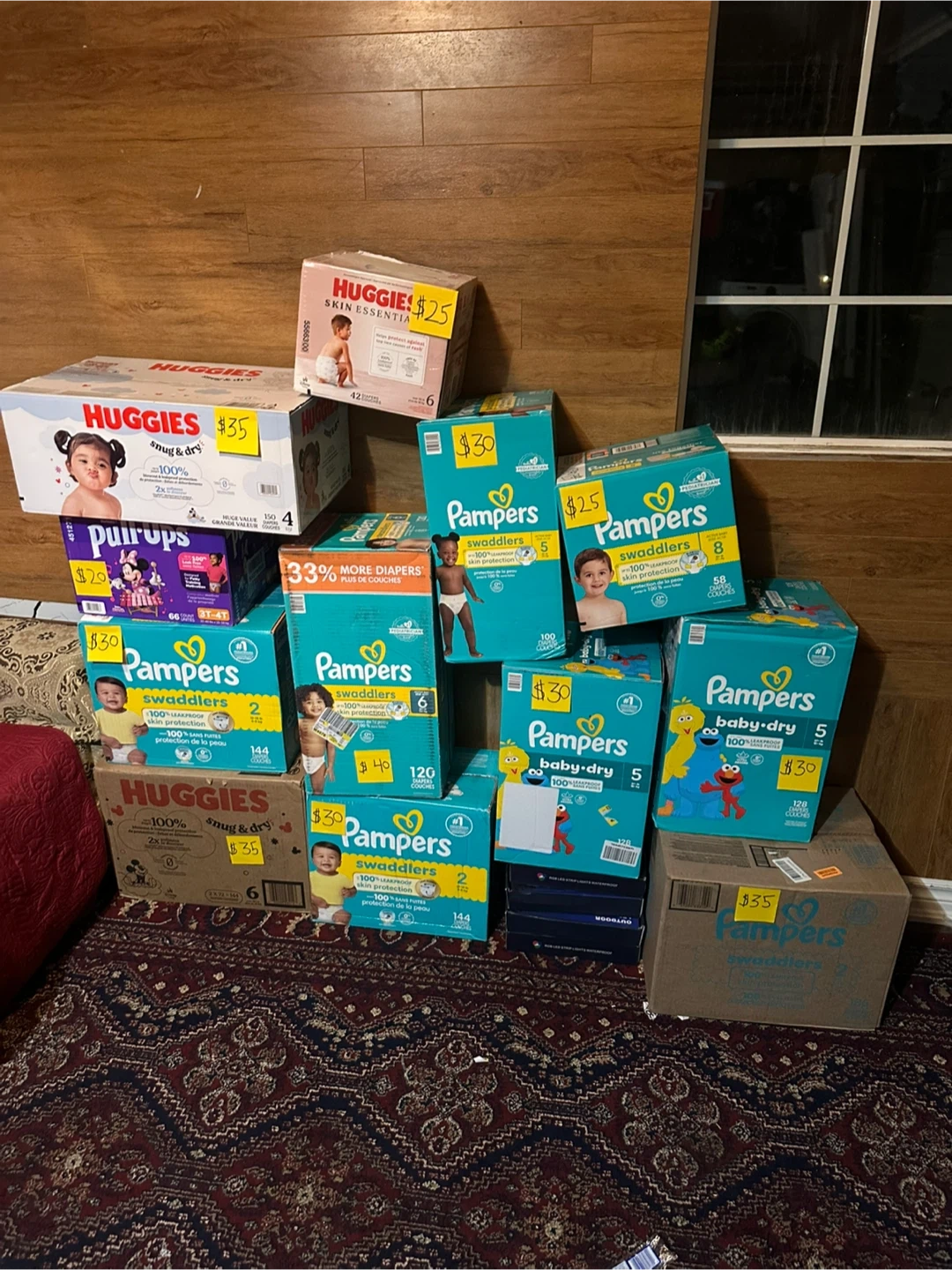 Selling a mix of Huggies and Pampers diapers. Various sizes and types available. Please see photos for details on sizes and quantities. Great deal!