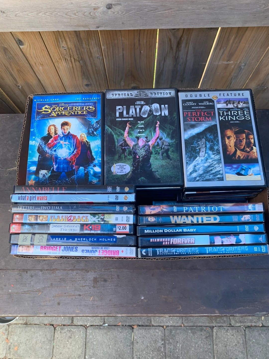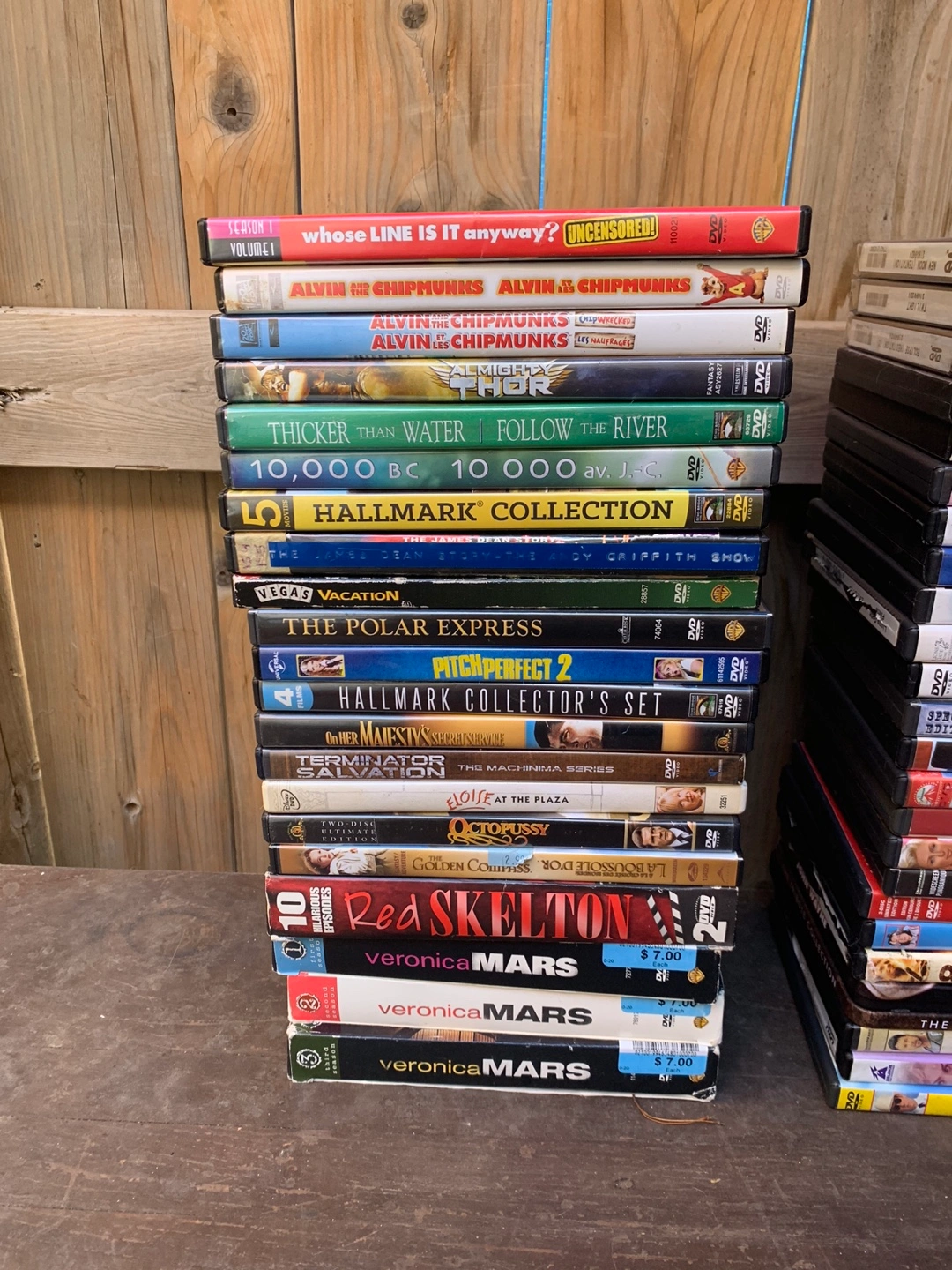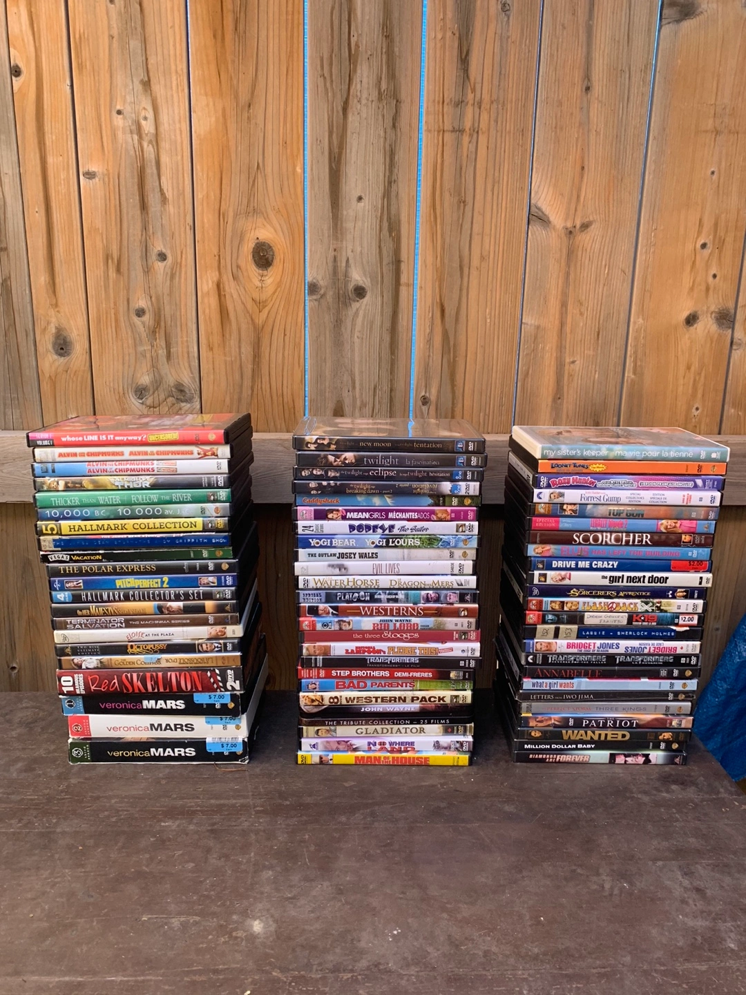 Selling a large collection of new and used DVDs! Lots of different movies and TV shows. Great for building your collection or for family movie nights. Titles include everything from comedies to dramas to kids' movies. Come take a look! $25 for all