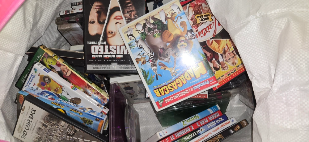 Selling a collection of DVDs with various titles. Includes movies like Madagascar, Shrek, and more! Perfect for family movie nights or expanding your collection