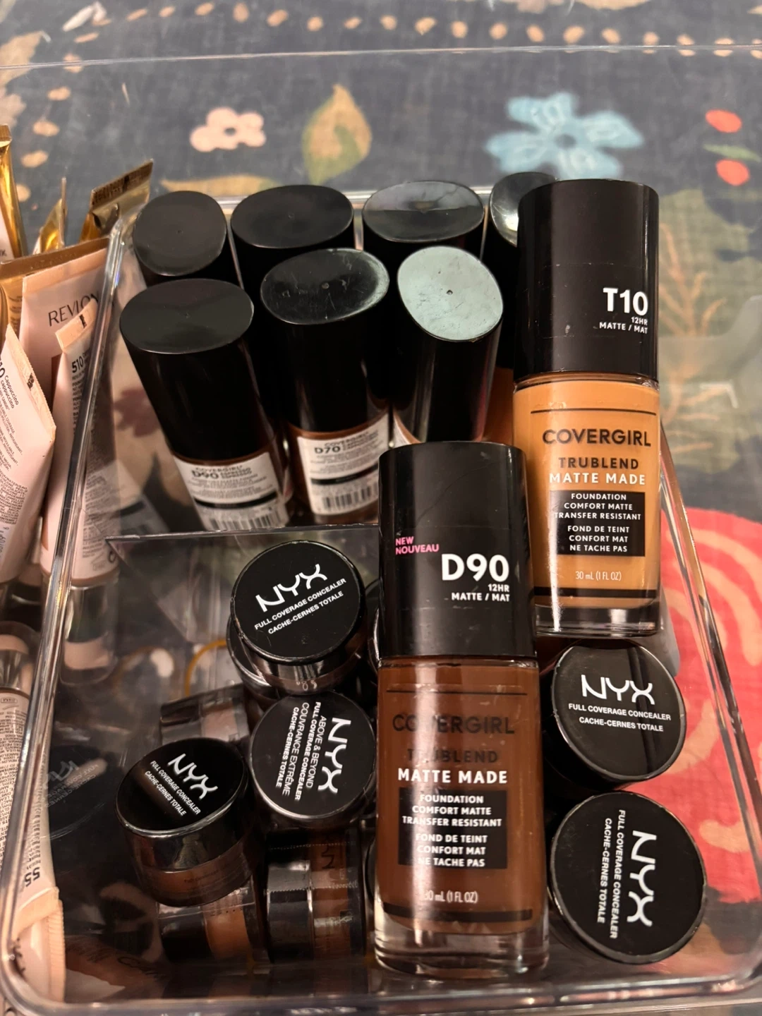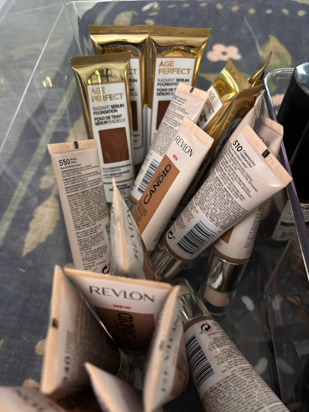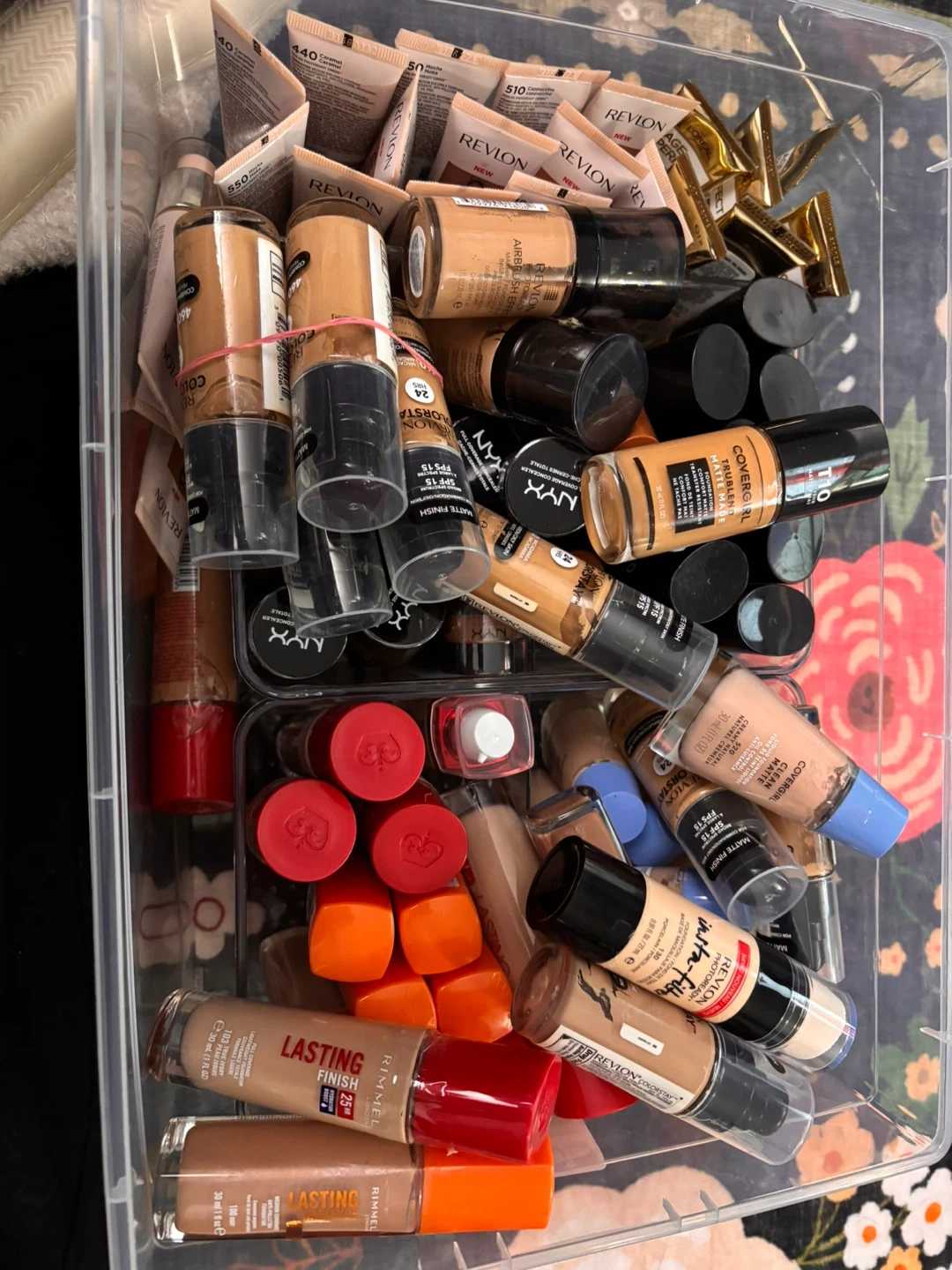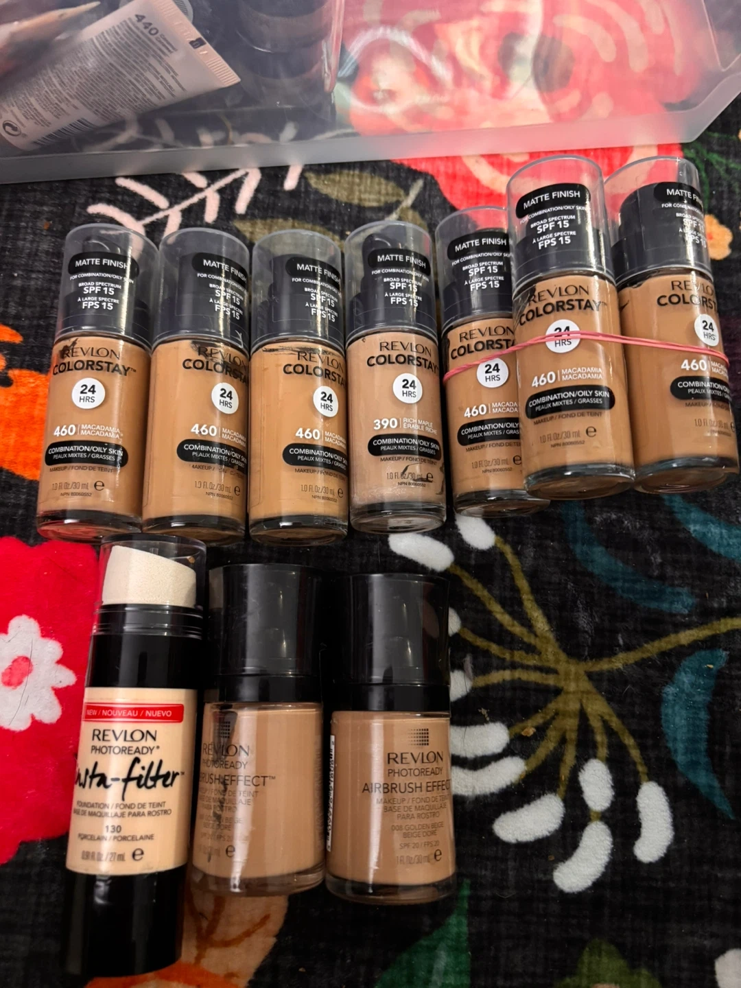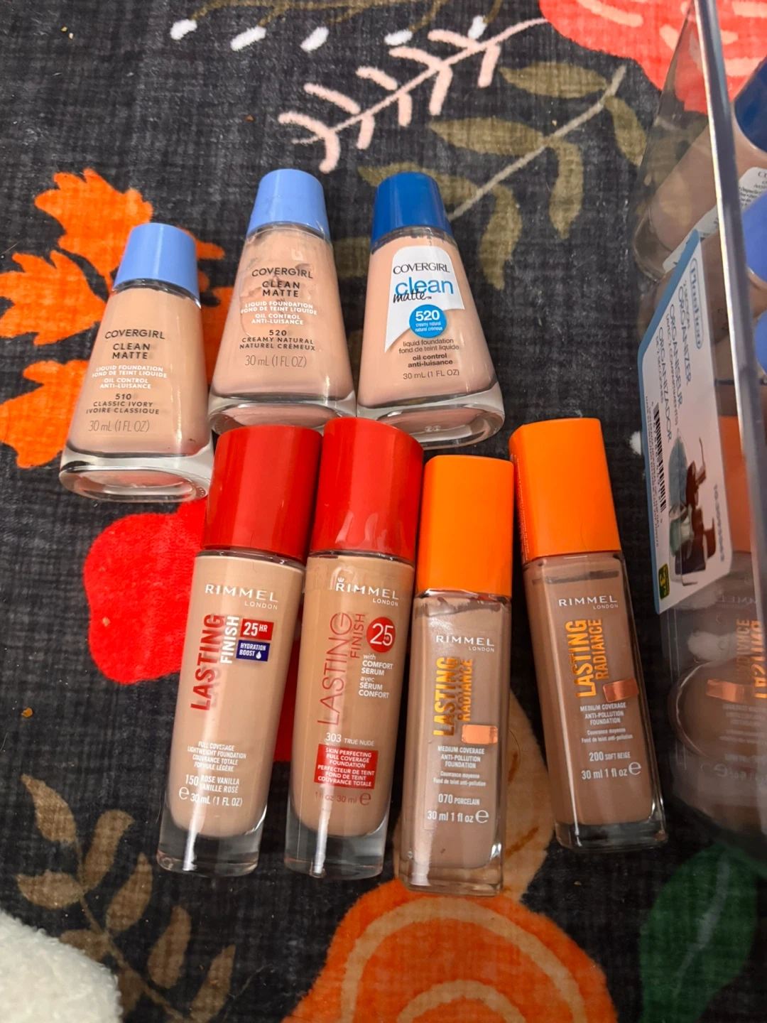 Selling a mixed lot of foundations from various brands including Rimmel, Covergirl, Revlon, and NYX. Shades and types vary, perfect for makeup enthusiasts! over a $2000 value brand new never used asking $350 obo 98 products in total, if your make up artist into reselling, maybe gifting or making baskets this is a great opportunity!! many assortment of shades for all skin types... 24 nyx concealer 6 L'Oreal age, perfect serum foundation 16 revlon candid foundation 1 revlon age define foundation 2 revlon photo finish airbrush effect foundation 8 revlon colour stay foundation 1 revlon photo ready Insta filter foundation 9 cover girl true blend mat made foundation 9 nine Remmel lasting radiance foundation 6 six Remo lasting finish foundation with comfort serum 16 cover, girl clean foundation pick up at Egling head Midland