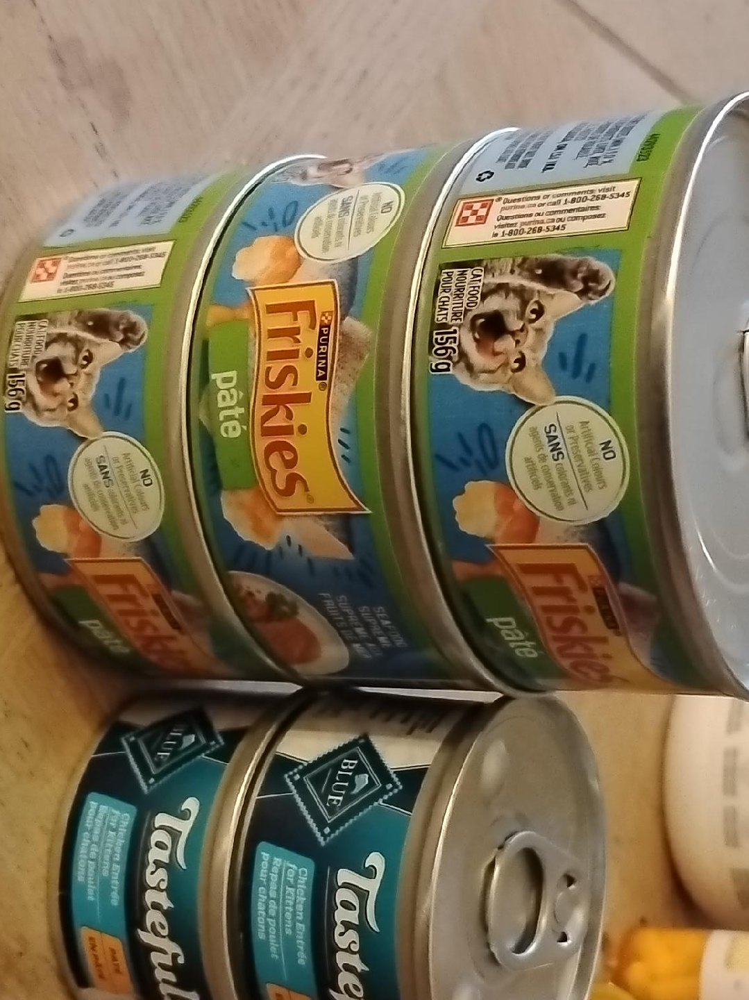 Selling a mixed lot of cat food cans! My cat does not eat wet cat food so 5 bucks for the lot ๐ Includes both Purina Friskies pate and Blue Tastefuls Chicken Entree for Kittens pate. Perfect for your furry friend!