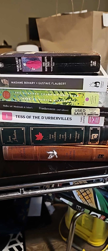 Posted on other sites Selling a mixed lot of classic books, including: - The Handmaid's Tale by Margaret Atwood - Madame Bovary by Gustave Flaubert - Frankenstein (2nd edition) by Shelley - Tess of the D'Urbervilles by Hardy - four Books by Jane Austen - The Divine Comedy by Dante Alighieri 65 dollars for this weekend only. can sell separately, price will be discussed.