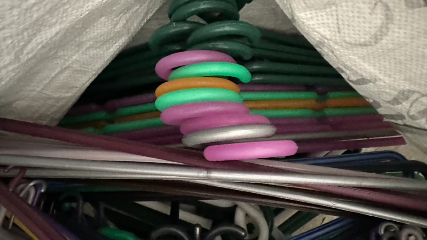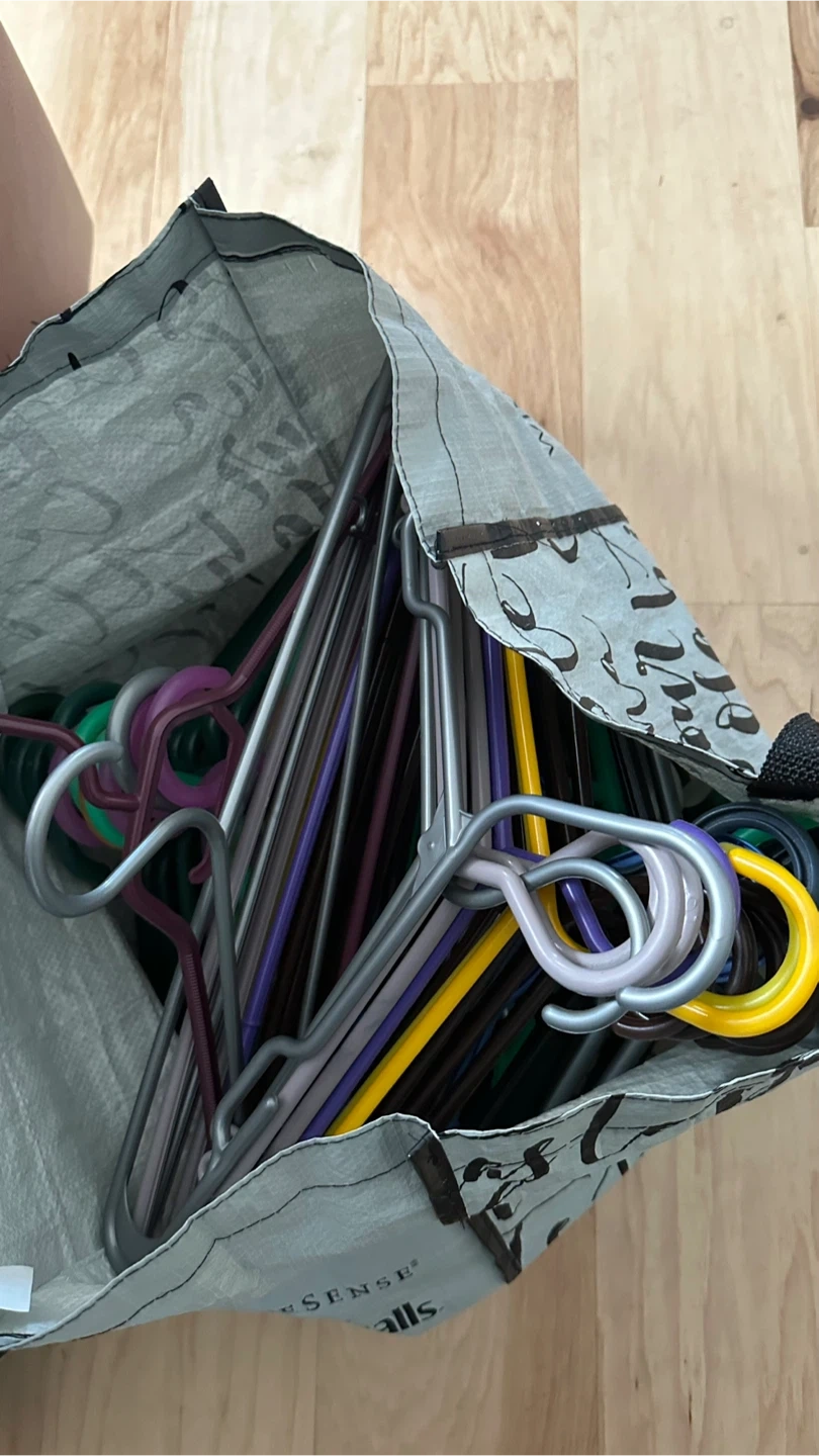 Selling a mixed lot of 50 clothes hangers in various colours. Most are thicker grade hangers. Great for organizing your closet! Porch pick up Smoke free home Woodbine and Lumsden