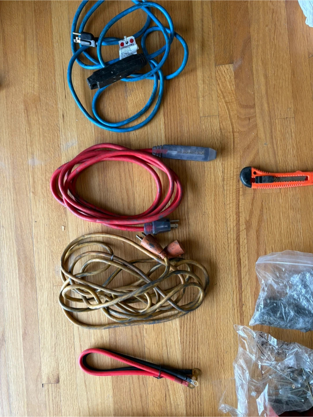 Selling a mixed lot of various electrical and hardware supplies. Includes extension cords, fasteners, and other assorted items as pictured. Great for someone looking to stock up their workshop or tackle a few projects。each one is 2-5$, total is negotiable.