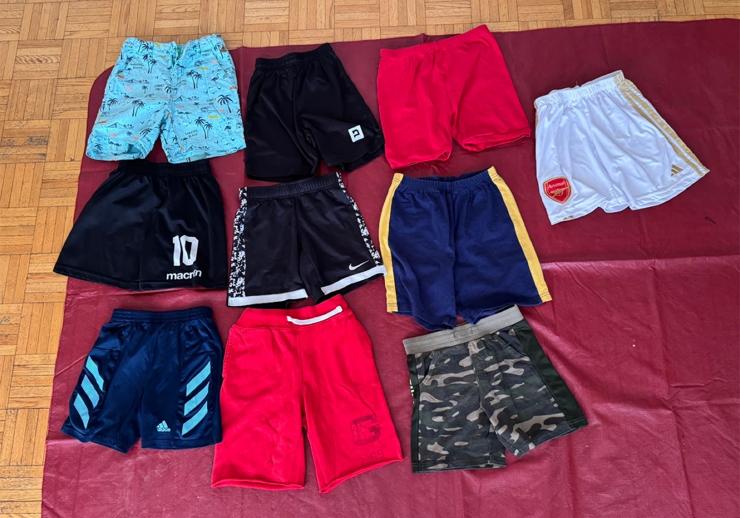Selling a mixed lot of kids' shorts! There's a variety of styles and sizes, including brands like Adidas, Nike, and Macron. Perfect for summer activities or sports! 6-7-8-9 size 20$ for lot